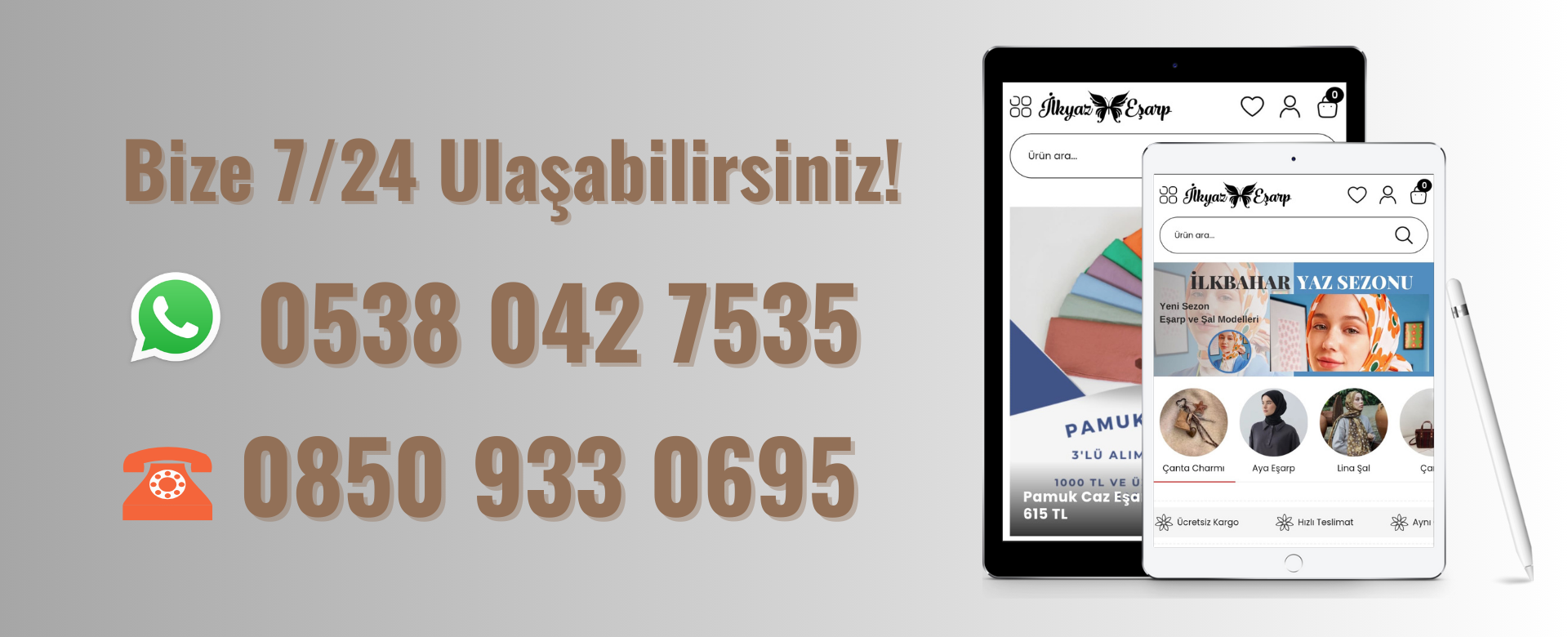 2015 yılından bu yana faaliyet gösteren İlkyaz Eşarp, müşteri memnuniyetini ön planda tutan yaklaşımı ve her sezon indirimli fiyat politikası ile siz müşterilerimize hizmet ediyor. Yurtiçi Kargo ile çalışıyoruz ve kargo ücreti 110₺ 'dir. 1000₺ üstü siparişlerde ise kargo ücretsizdir. Kapıda ödemelerde 45₺ kapıda ödeme ücreti vardır. İadelerde kapıda ödeme ile alındığında iade de 45₺ kapıda ödeme parası kesiliyor. Bu kesinti kargo firmasına ödeniyor. İade edilen ürün firma tarafından teslim alındığı andan itibaren 10 iş gününde paranız hesabınıza aktarılır.