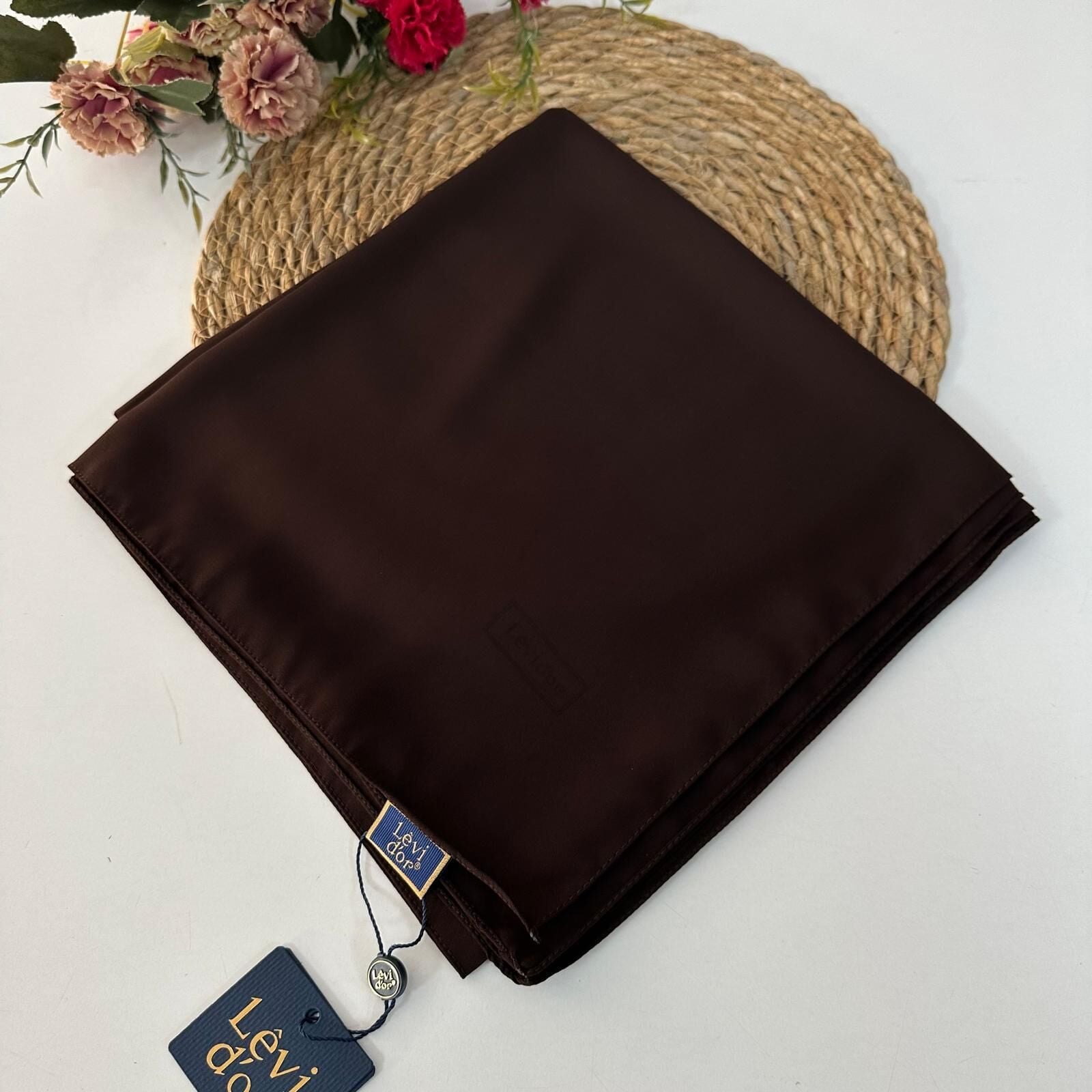 Levidor marka eşarbın kumaşı medine ipeğidir. Medine ipeği terletmez, tek katta dahi iç göstermez. Rahat bir kullanıma sahiptir.