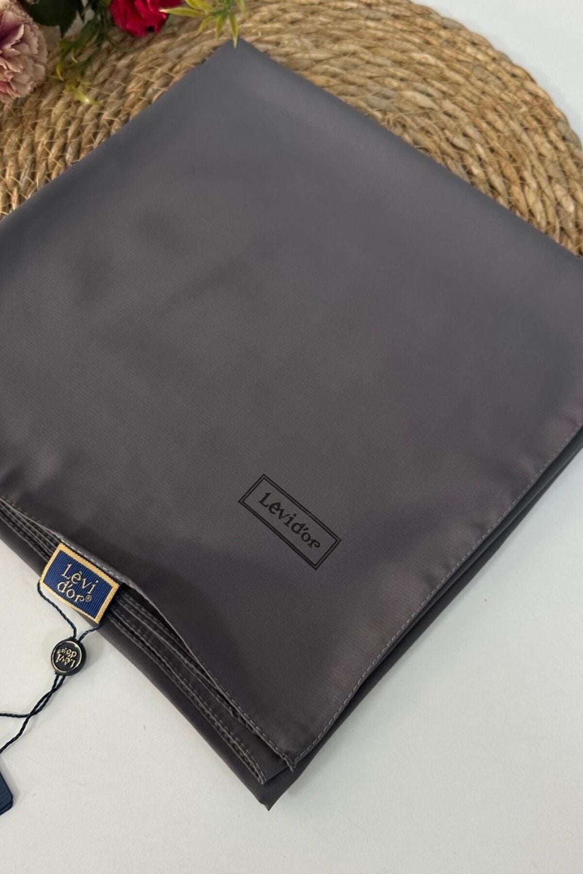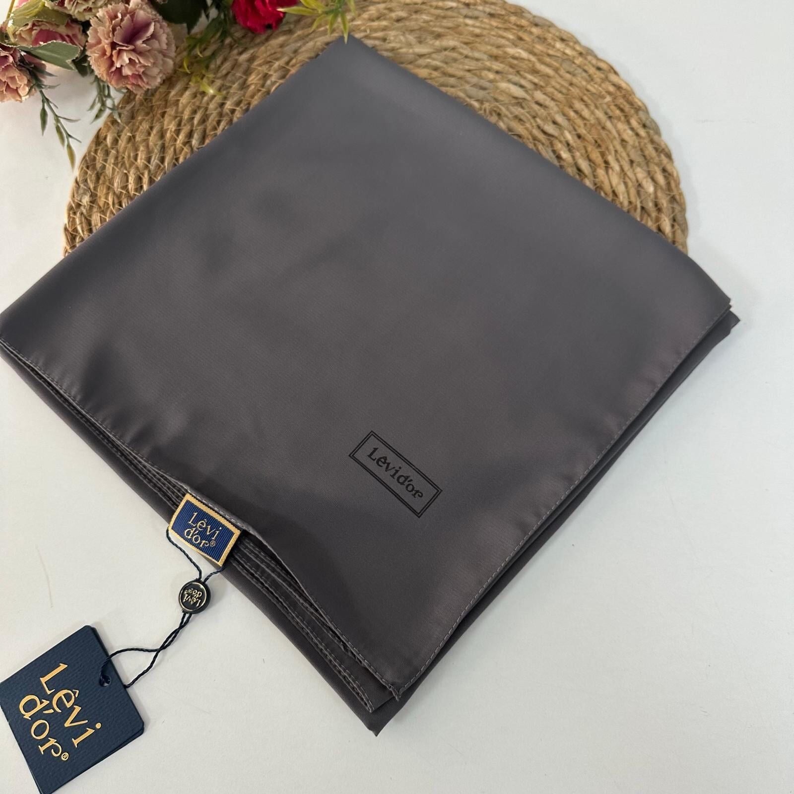 Levidor marka eşarbın kumaşı medine ipeğidir. Medine ipeği terletmez, tek katta dahi iç göstermez. Rahat bir kullanıma sahiptir.