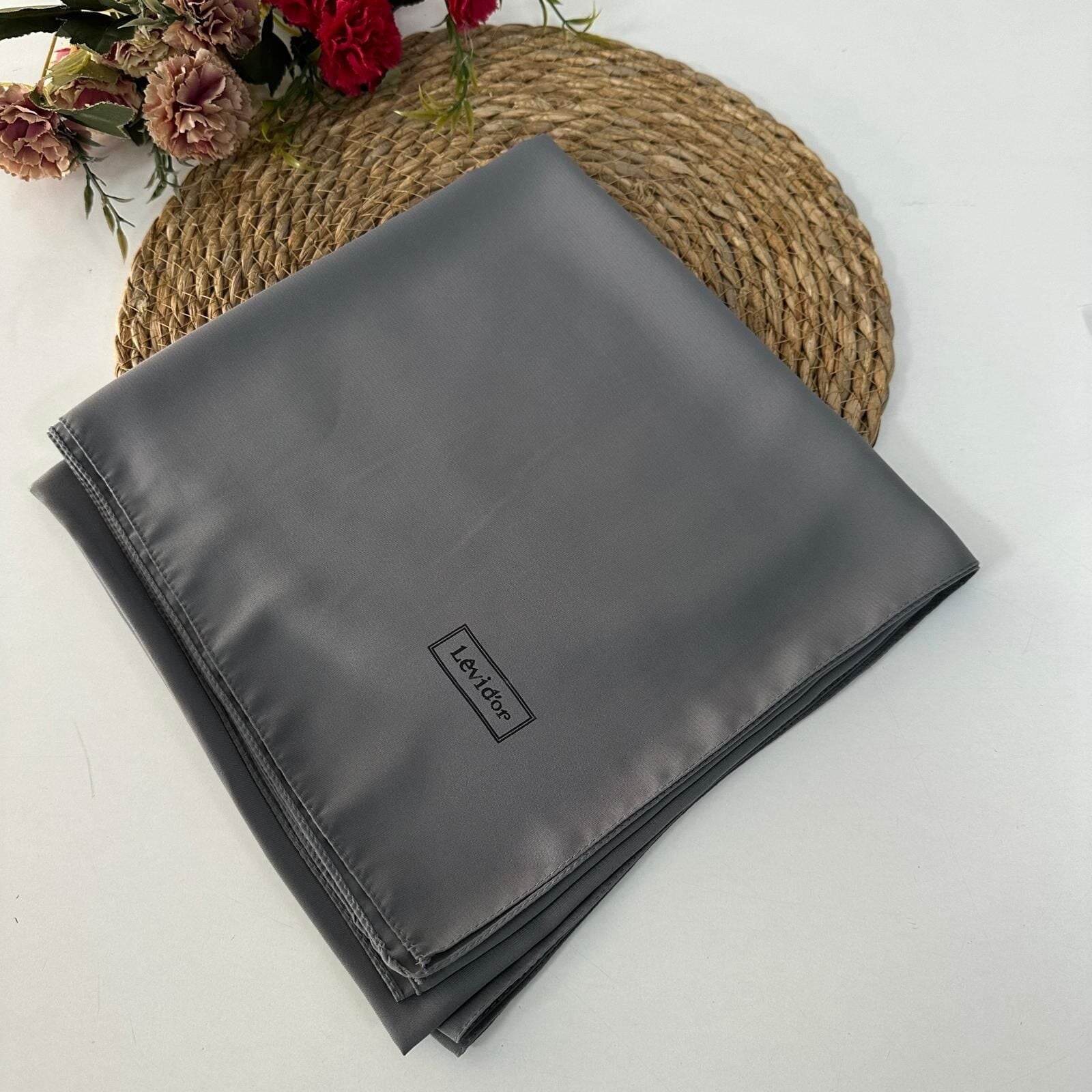 Levidor marka eşarbın kumaşı medine ipeğidir. Medine ipeği terletmez, tek katta dahi iç göstermez. Rahat bir kullanıma sahiptir.