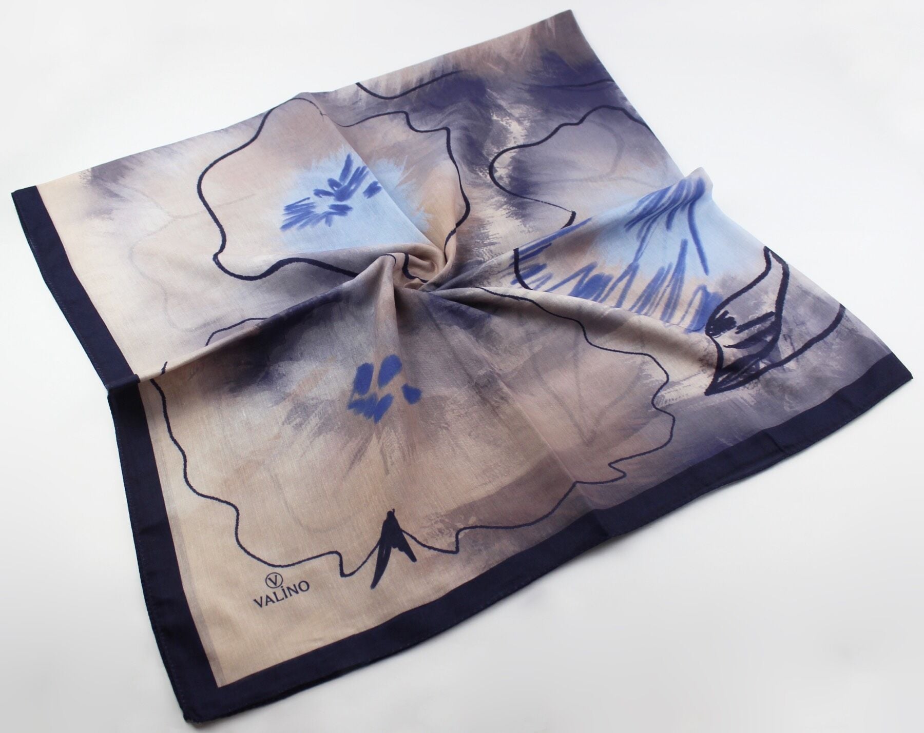 120x120 Sulu Boya Desenli Pamuklu Eşarp - Lacivert