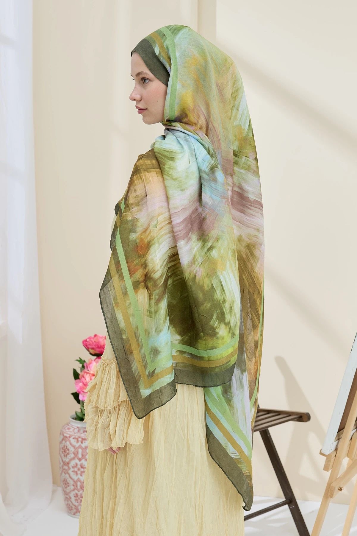 Desenli bambu şal koleksiyonu dört mevsim kullanıma uydundur. Bürümcük dokunun doğal nefes alabilirlik özelliği ile yaz kış kullanıma uygundur. Kumaşı çok hafiftir başınızda yokmuş gibi bir his verir. Bambu şal yapışmaz, terletmez, ütü istemez.