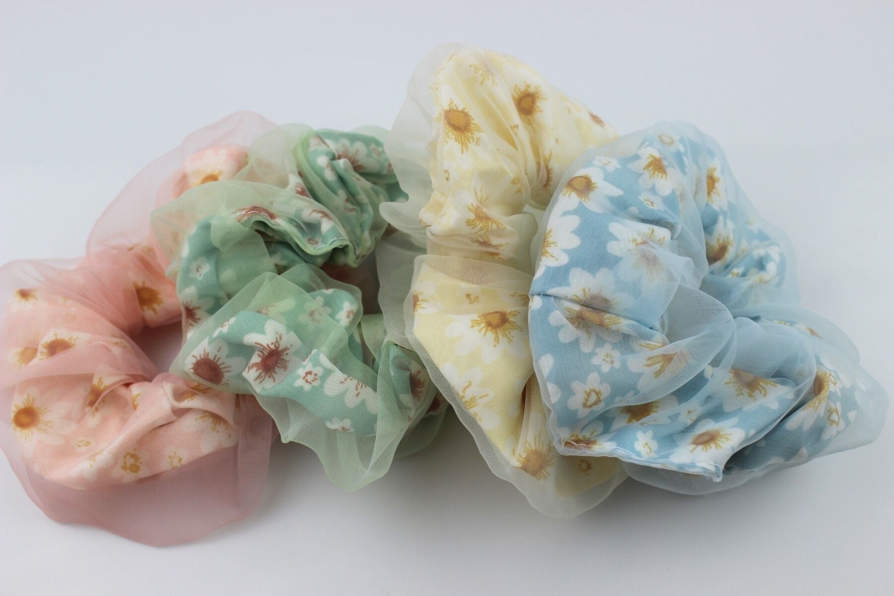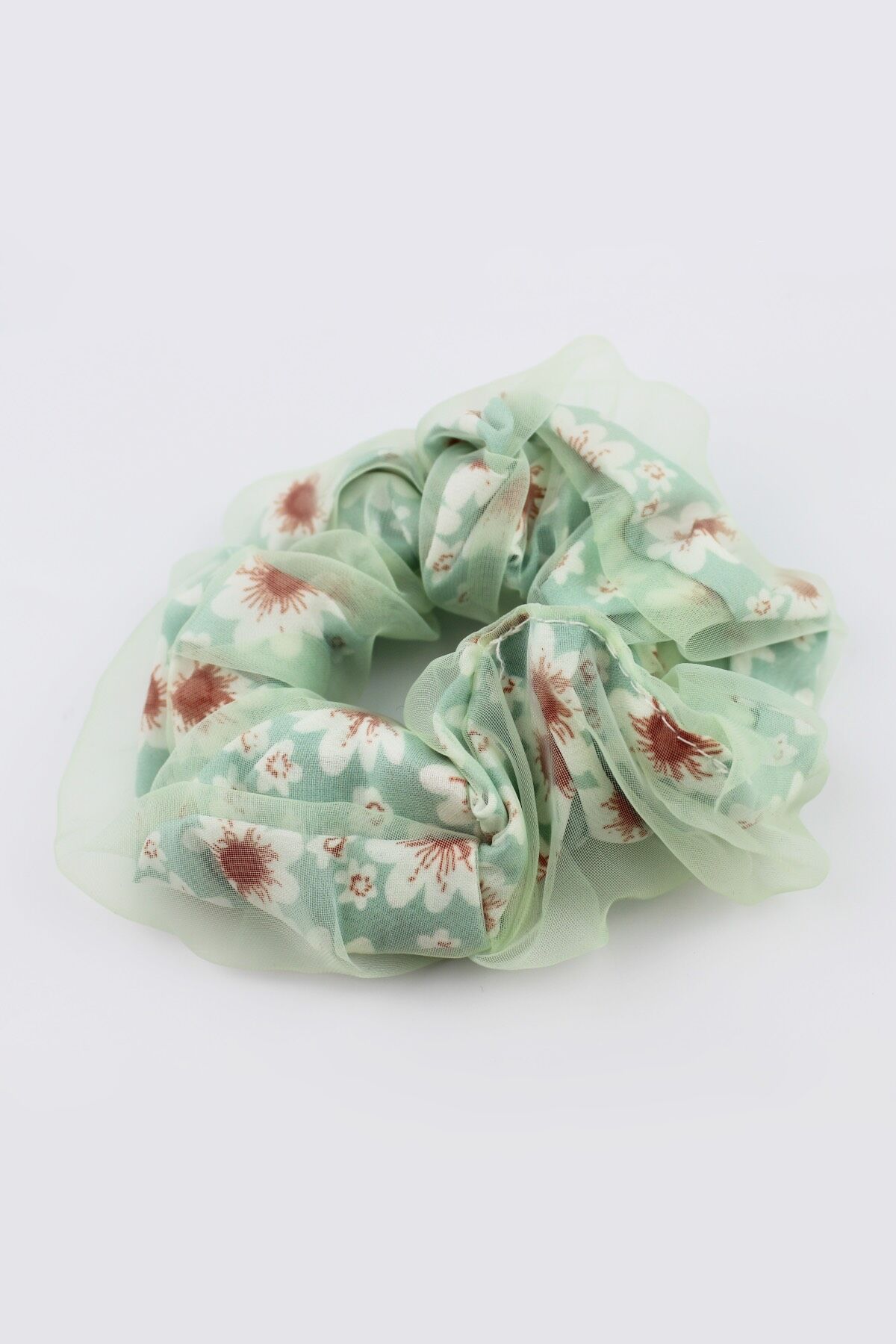 Çocuklar İçin Çiçek Desenli Tül Kumaş Çocuk Lastik Tokası - Yeşil
