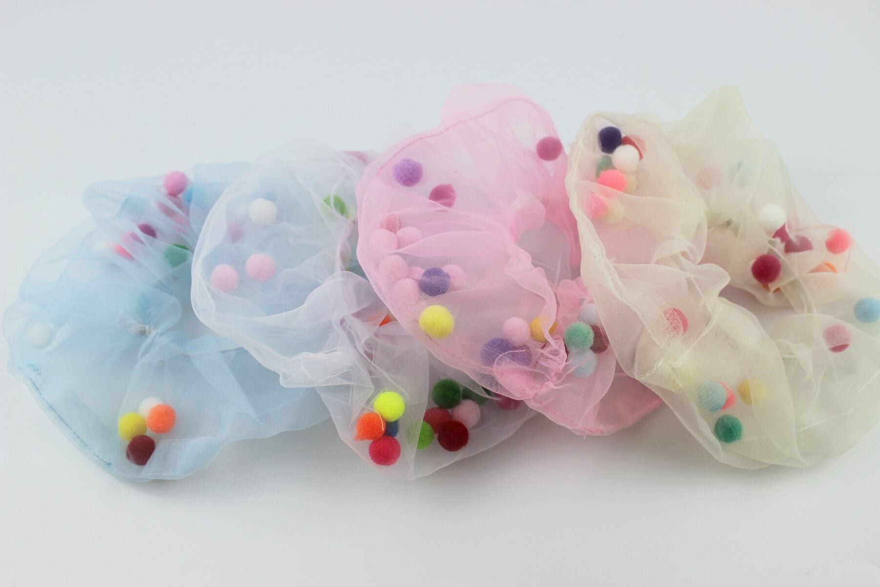 Çocuklar İçin Ponpon Tül Kumaş Çocuk Lastik Tokası - Sarı