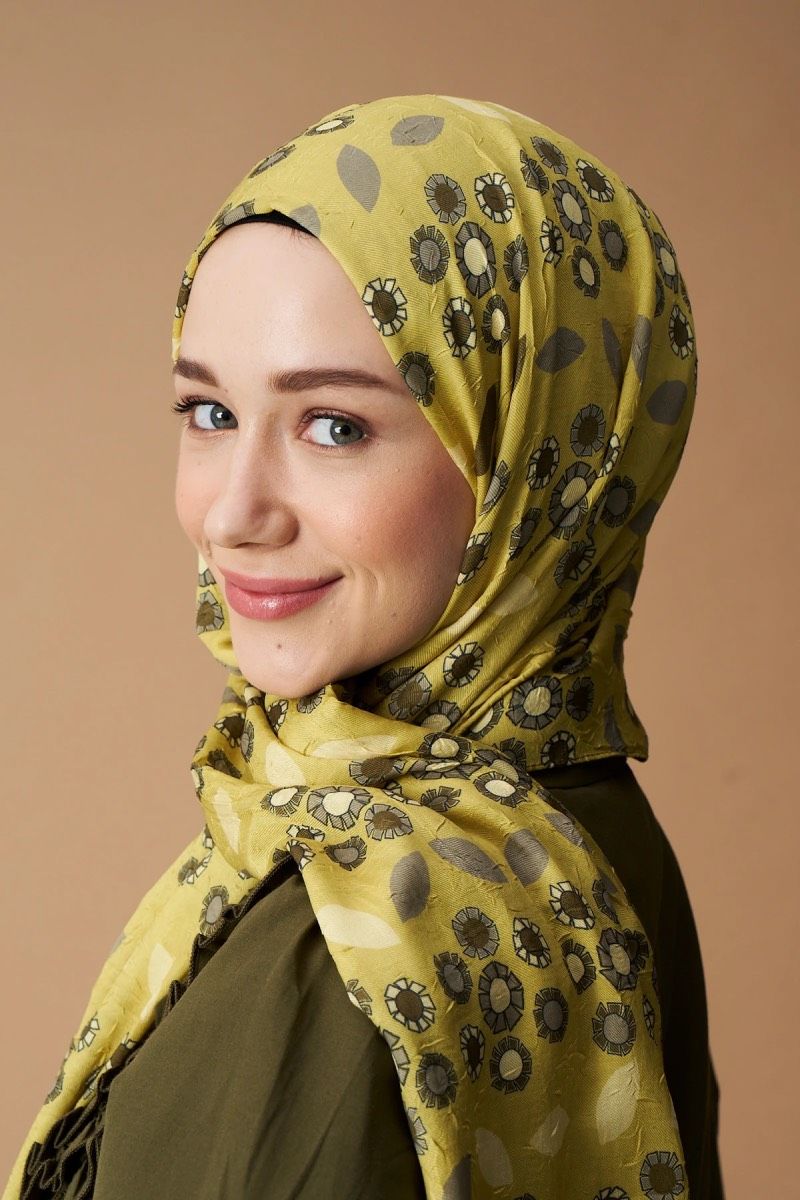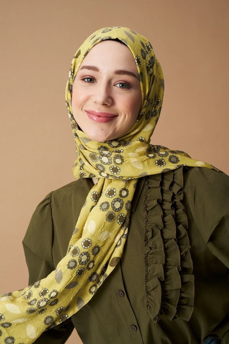 Damla Çiçek Desen Bambu Şal - Zeytin