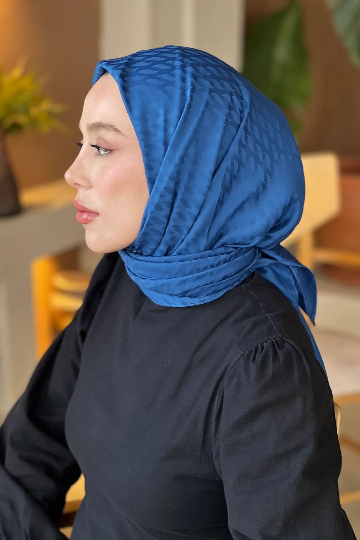 Modakaşmir ipeksi damla desenli jakar eşarp pamuklu dokusu sayesinde yumuşak, ipeksi ve başta ağırlık yapmaz. Kendinden desenli jakar dokumadır.
