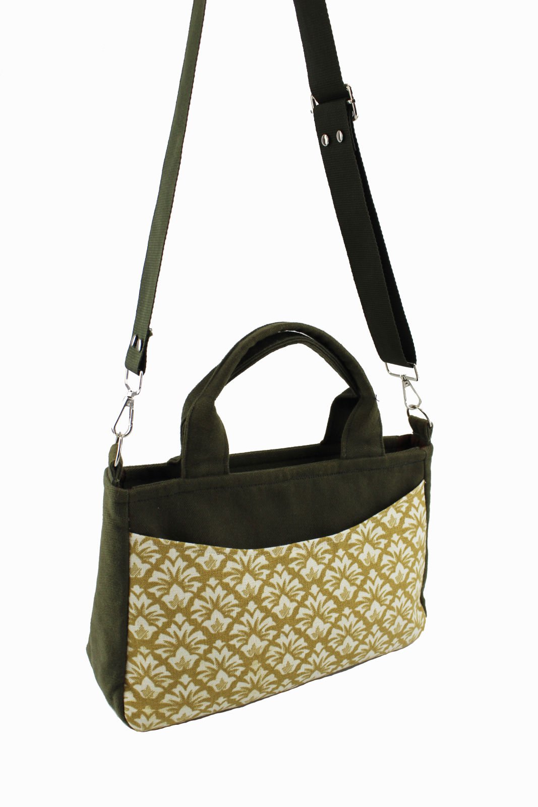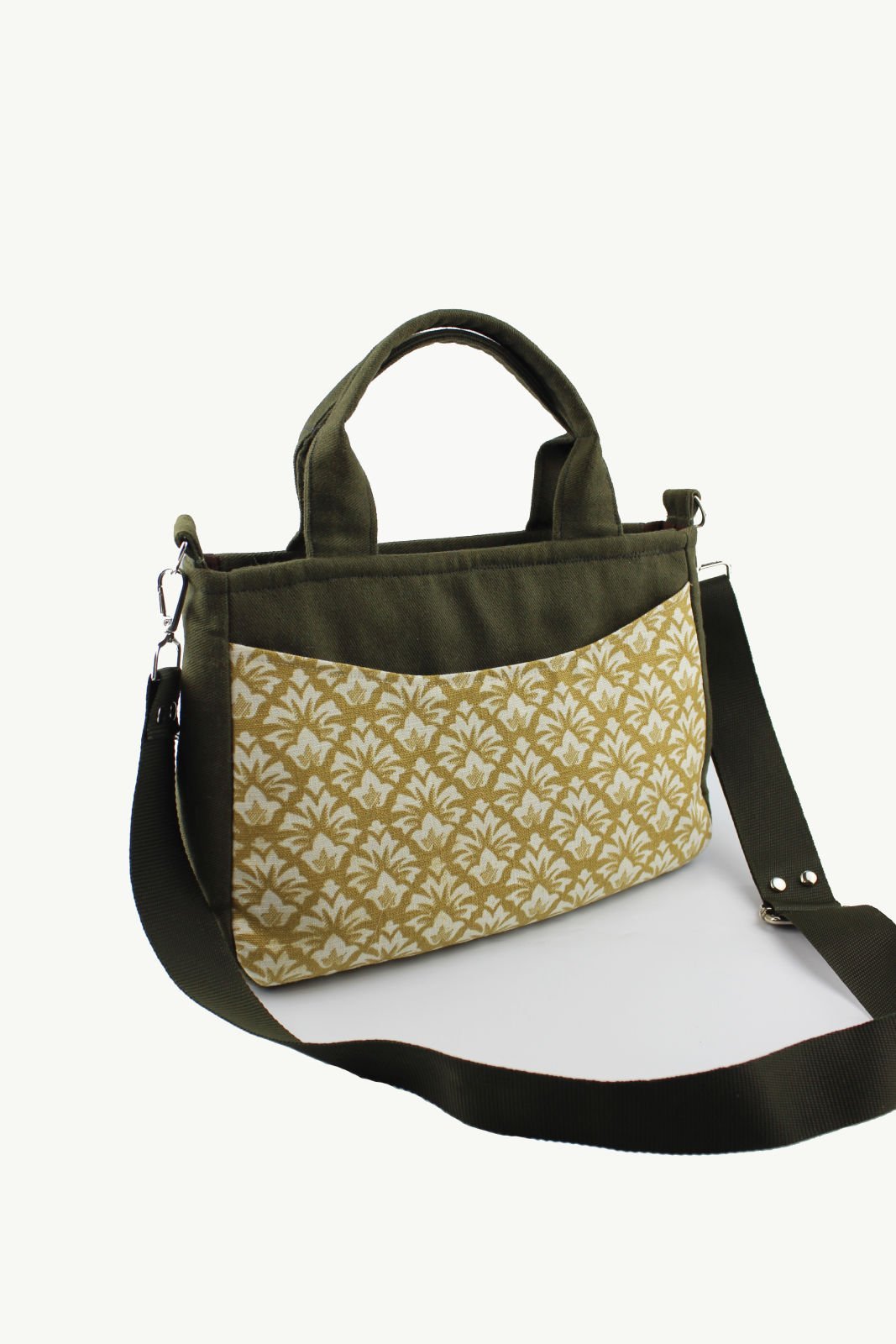 Desenli Kot Kumaş Yeşil Kadın Küçük Boy Çapraz Omuz Çantası günlük kullanım için uygundur. Ayarlanabilir omuz askılıdır.