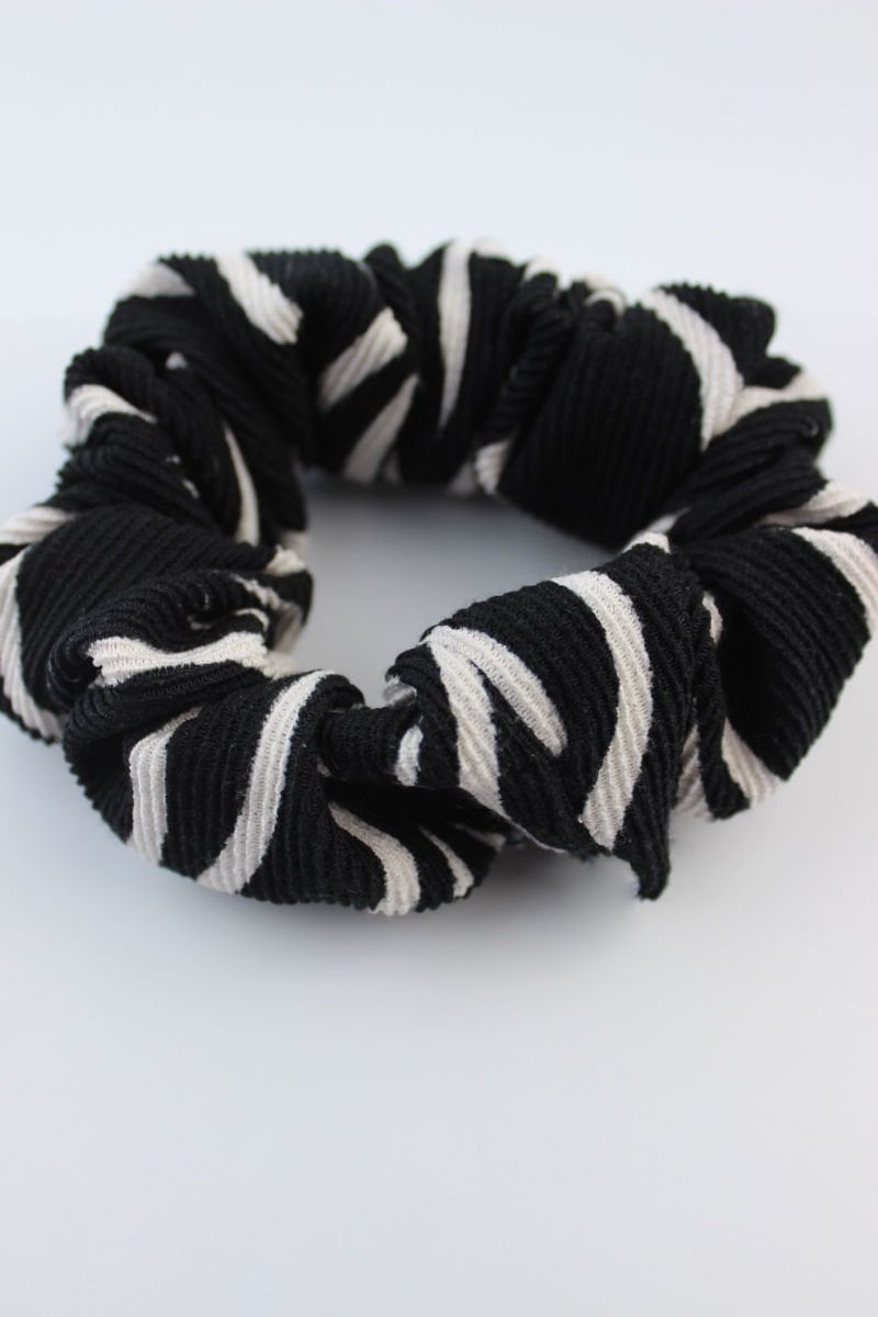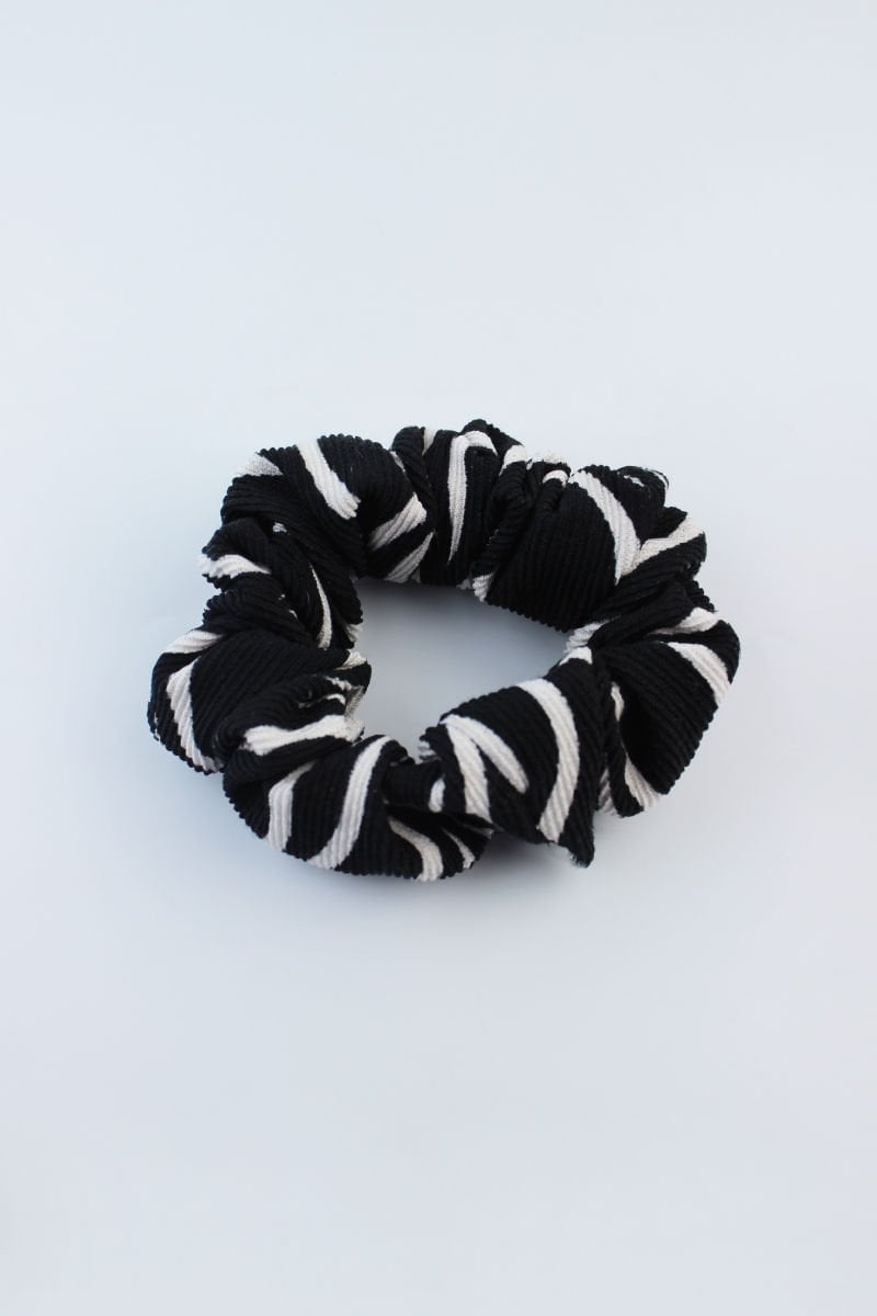 Desenli Triko Kumaş Lastik Toka Simit Toka - Siyah