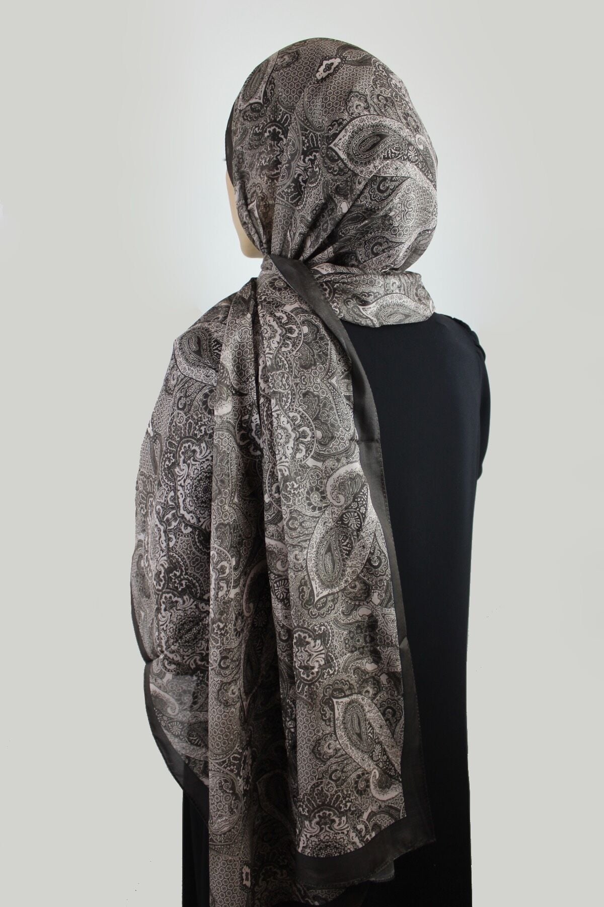 Etnik Desenli Vual İnce Pamuklu Şal - Acı Kahve