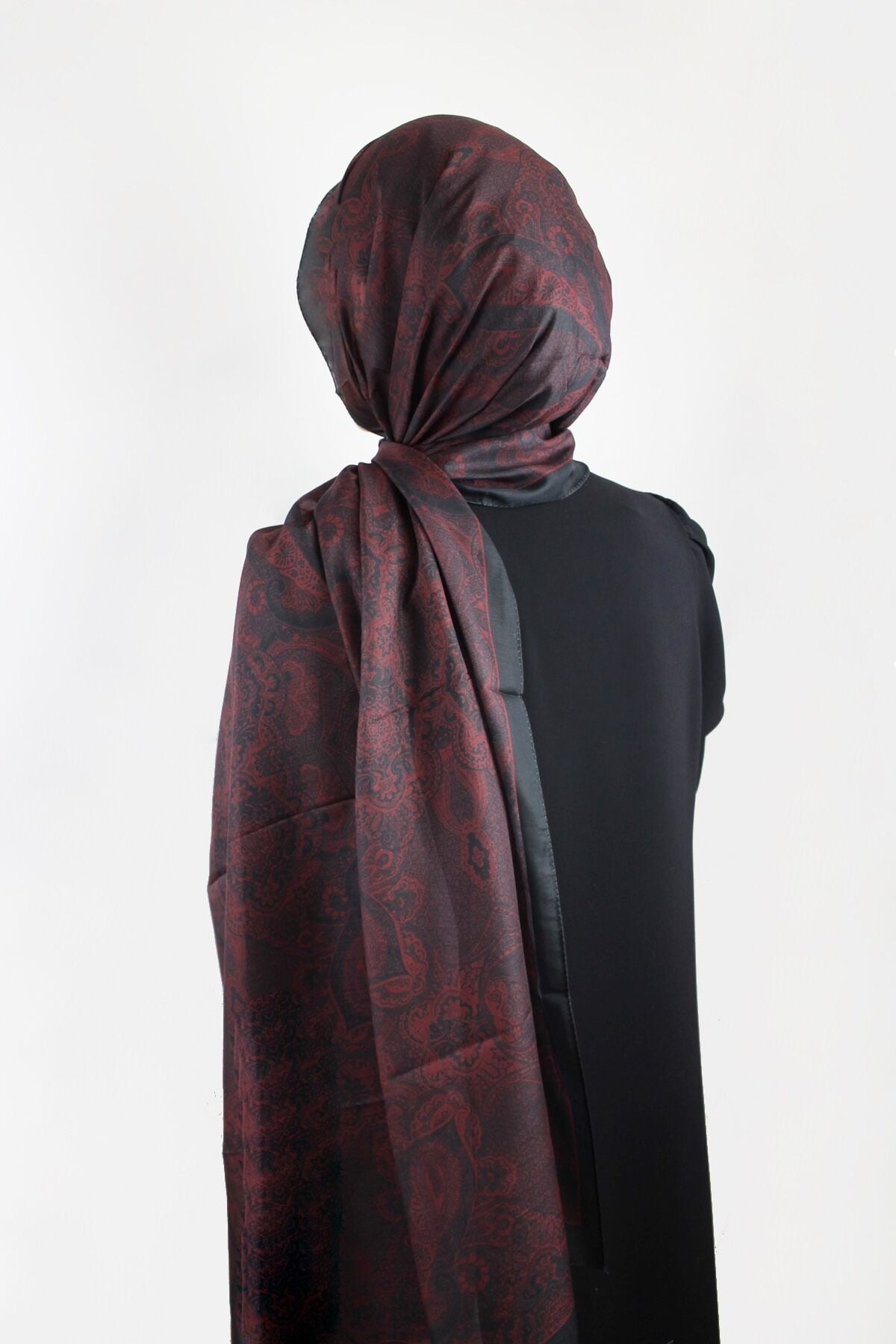 Etnik Desenli Vual İnce Pamuklu Şal - Bordo
