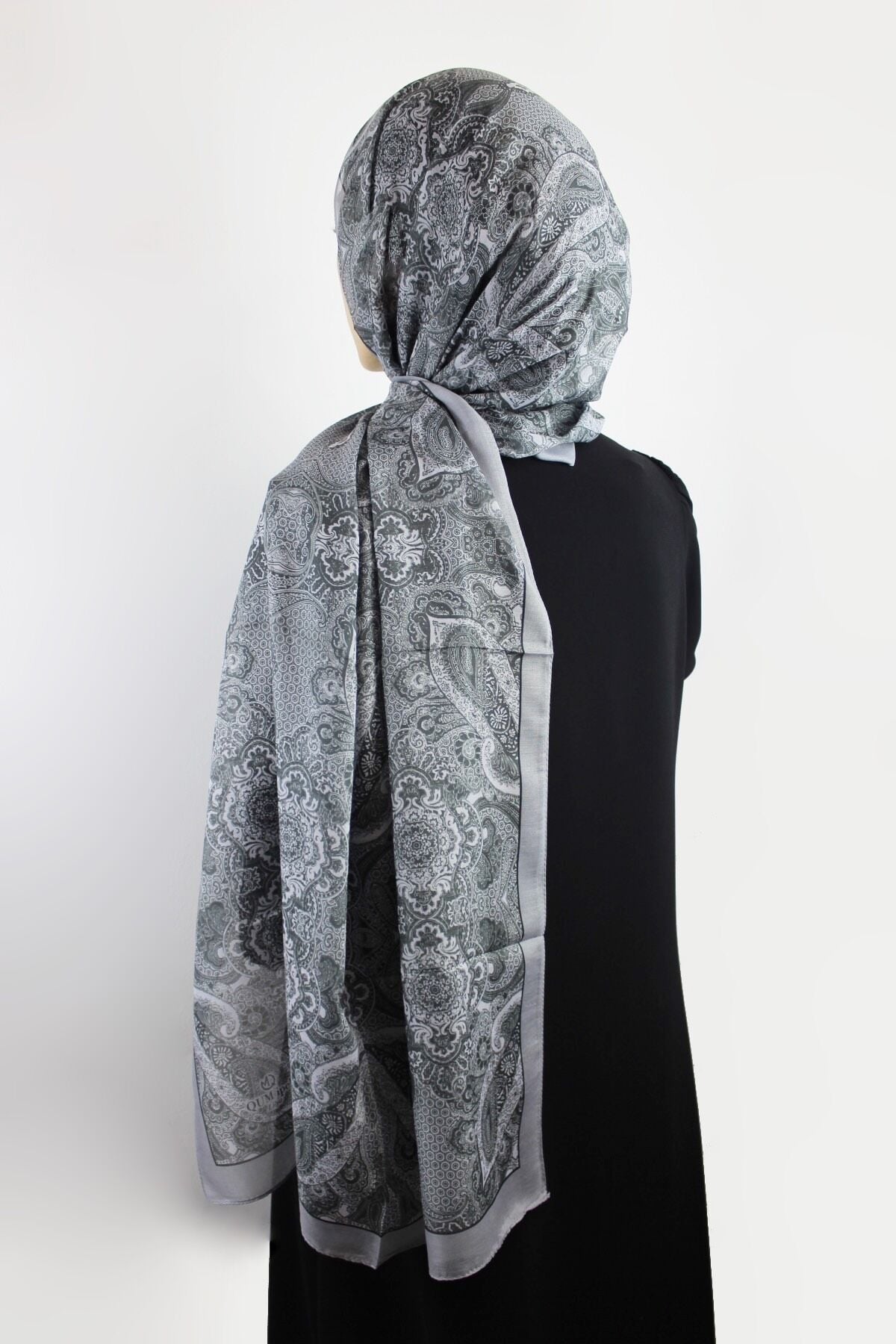 Etnik Desenli Vual İnce Pamuklu Şal - Gri