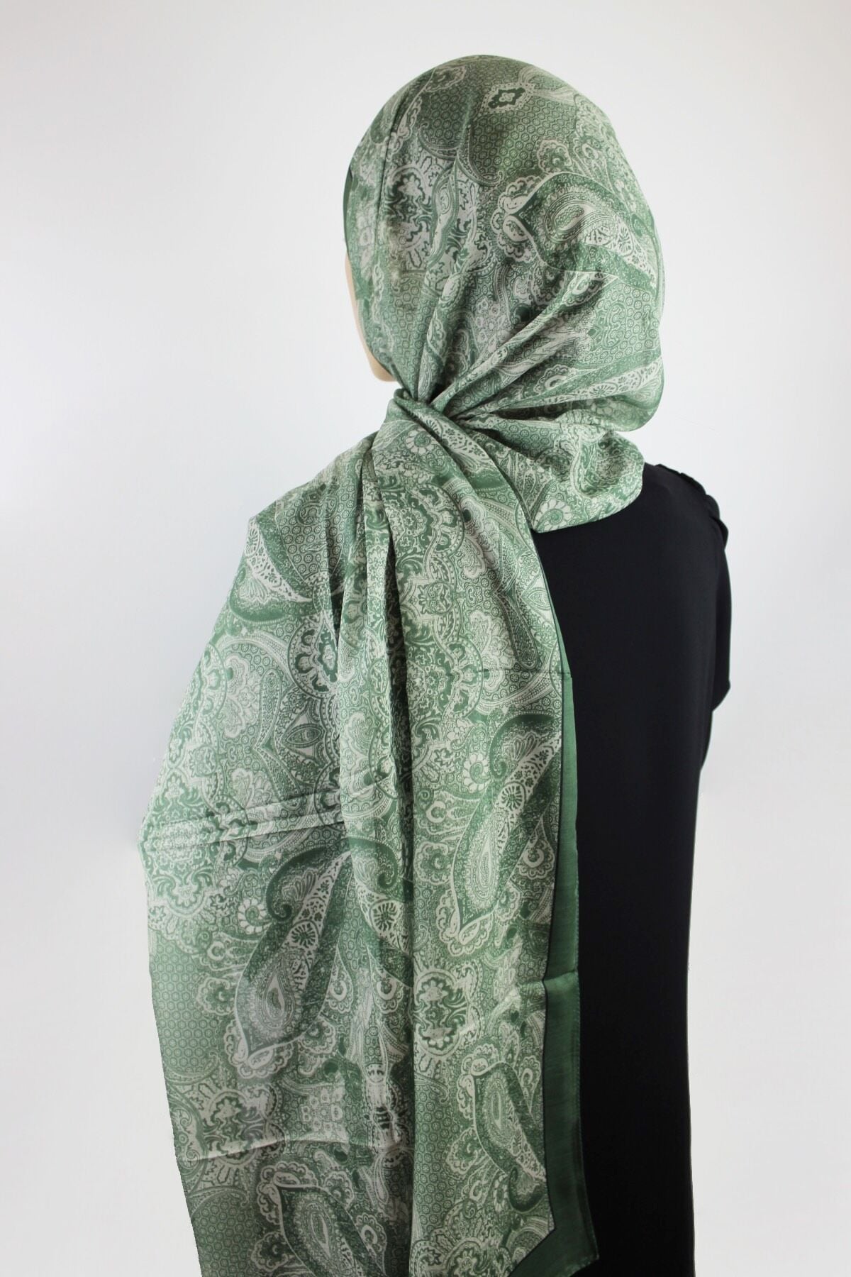 Etnik Desenli Vual İnce Pamuklu Şal - Yeşil