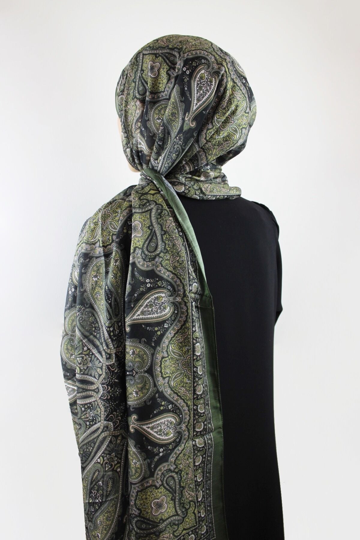 Etnik Klasik Desenli İnce Pamuklu Vual Şal - Haki