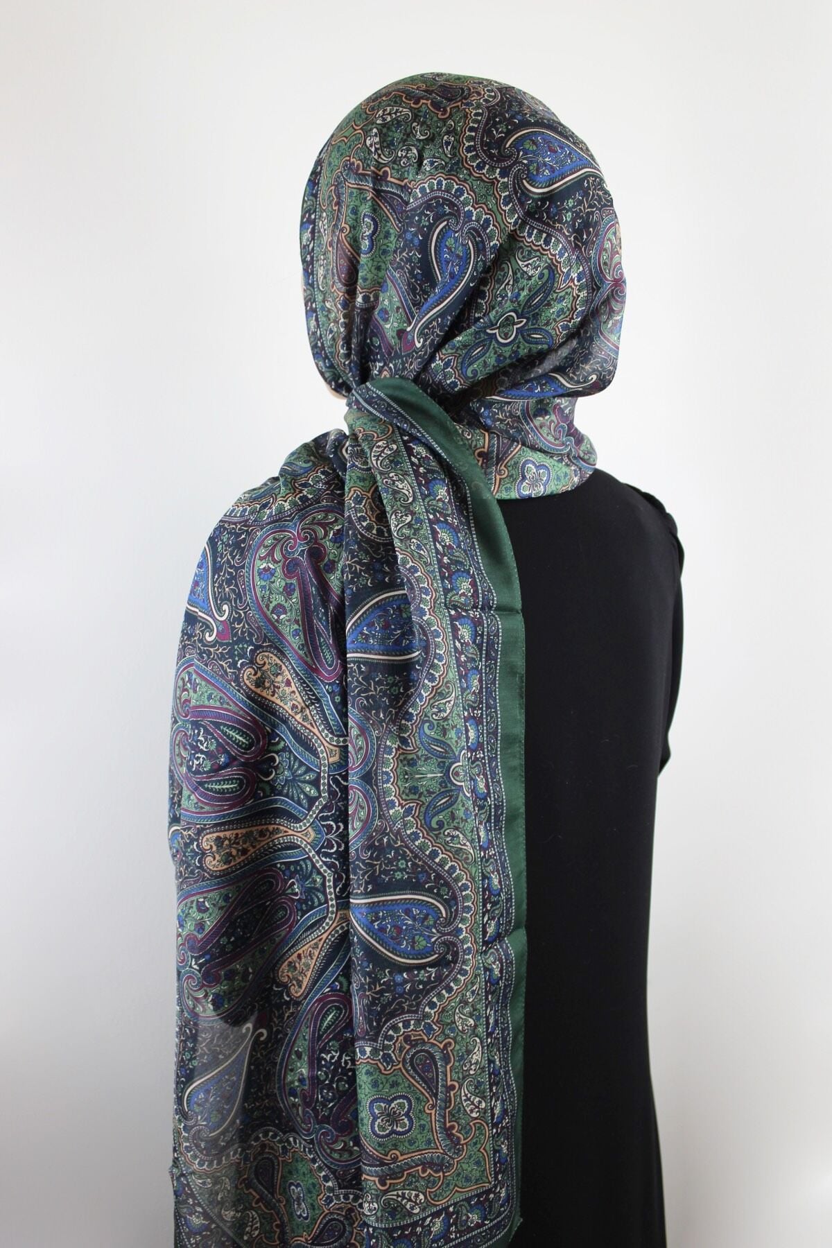 Etnik Klasik Desenli İnce Pamuklu Vual Şal - Zümrüt