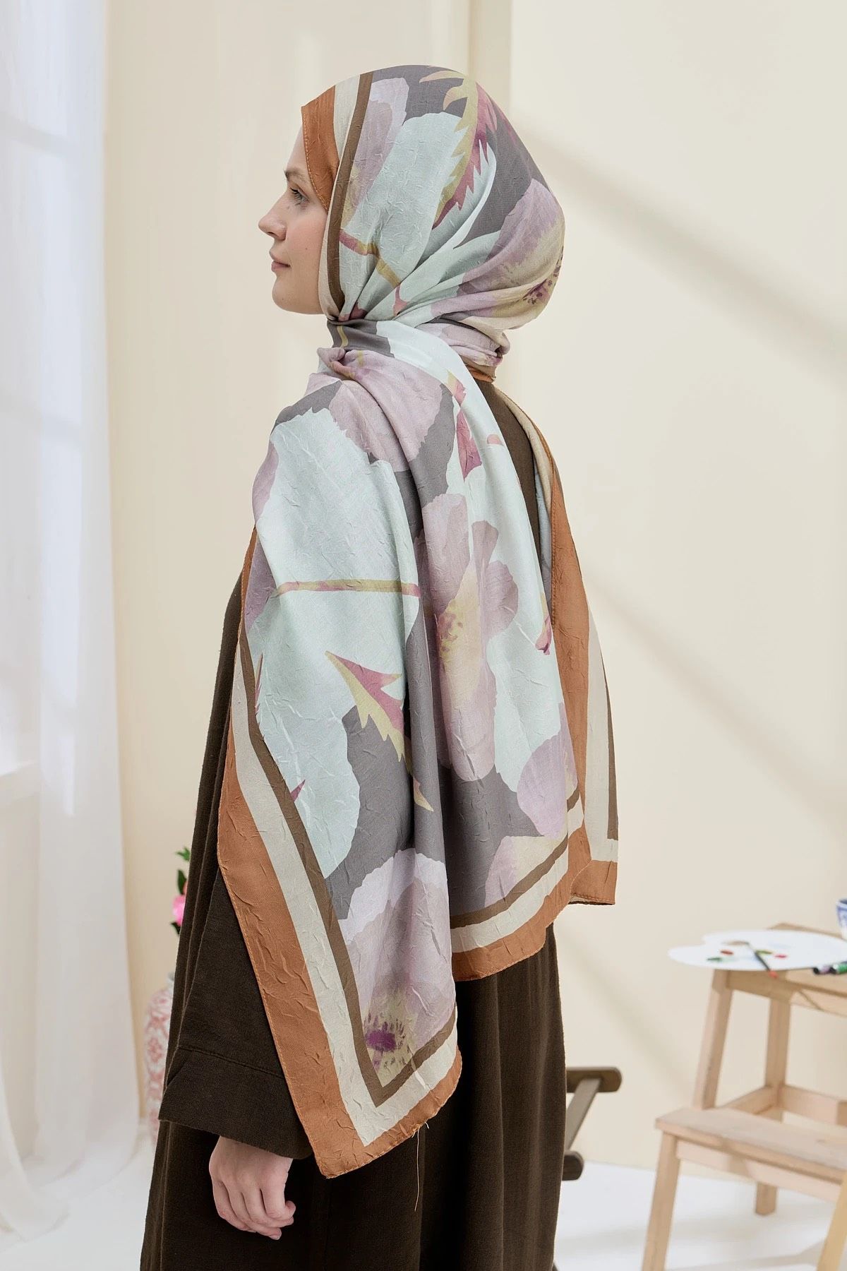 Desenli bambu şal koleksiyonu dört mevsim kullanıma uydundur. Bürümcük dokunun doğal nefes alabilirlik özelliği ile yaz kış kullanıma uygundur. Kumaşı çok hafiftir başınızda yokmuş gibi bir his verir. Bambu şal yapışmaz, terletmez, ütü istemez.