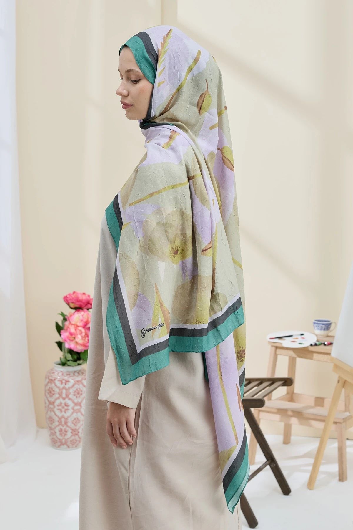 Desenli bambu şal koleksiyonu dört mevsim kullanıma uydundur. Bürümcük dokunun doğal nefes alabilirlik özelliği ile yaz kış kullanıma uygundur. Kumaşı çok hafiftir başınızda yokmuş gibi bir his verir. Bambu şal yapışmaz, terletmez, ütü istemez.