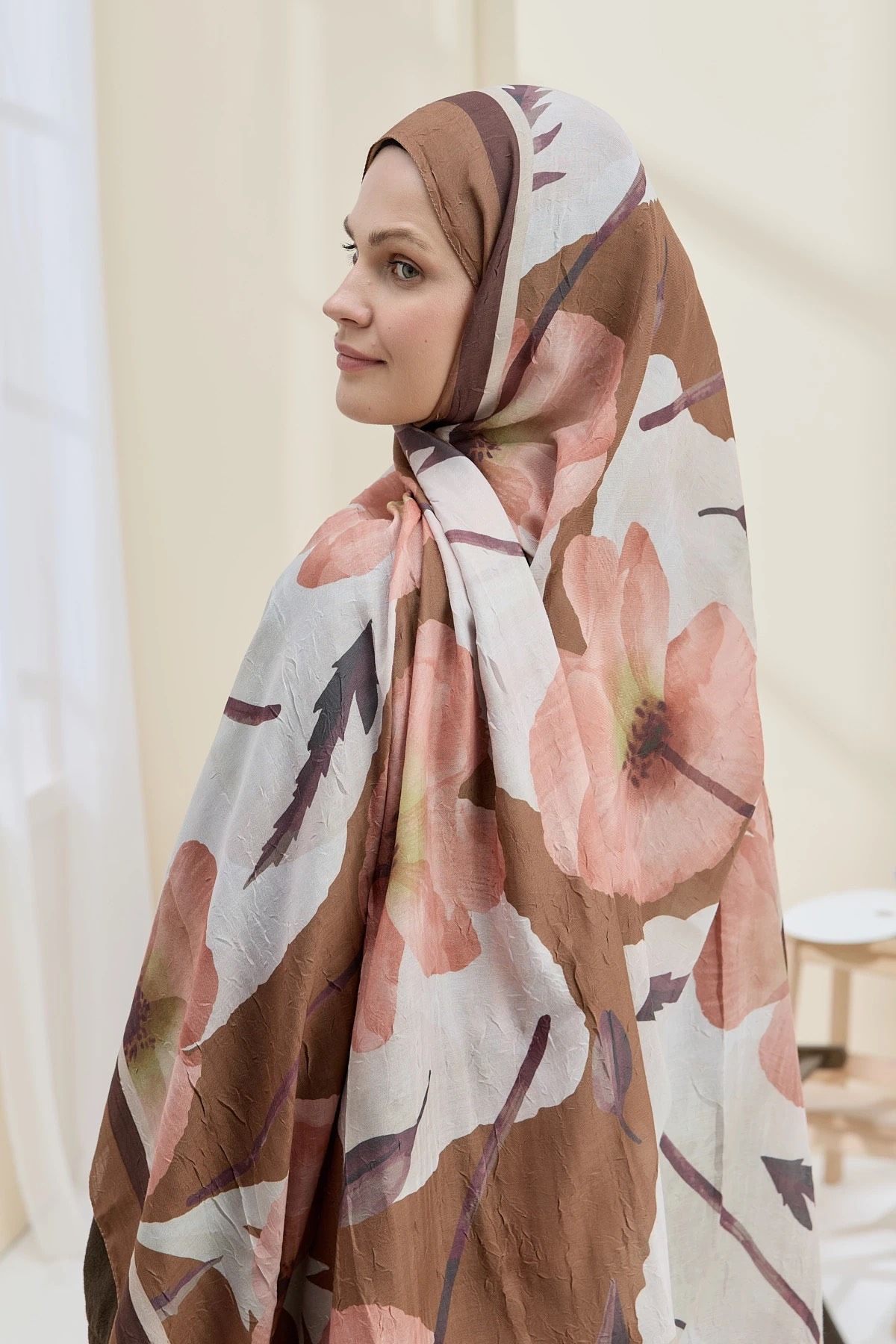 Desenli bambu şal koleksiyonu dört mevsim kullanıma uydundur. Bürümcük dokunun doğal nefes alabilirlik özelliği ile yaz kış kullanıma uygundur. Kumaşı çok hafiftir başınızda yokmuş gibi bir his verir. Bambu şal yapışmaz, terletmez, ütü istemez.
