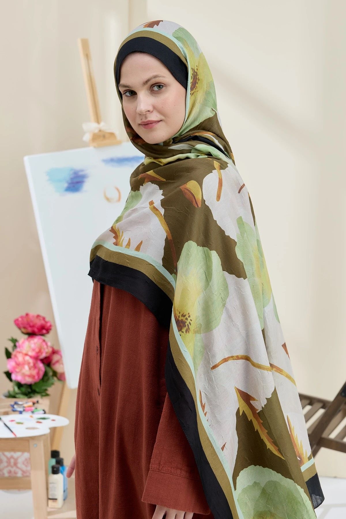 Desenli bambu şal koleksiyonu dört mevsim kullanıma uydundur. Bürümcük dokunun doğal nefes alabilirlik özelliği ile yaz kış kullanıma uygundur. Kumaşı çok hafiftir başınızda yokmuş gibi bir his verir. Bambu şal yapışmaz, terletmez, ütü istemez.