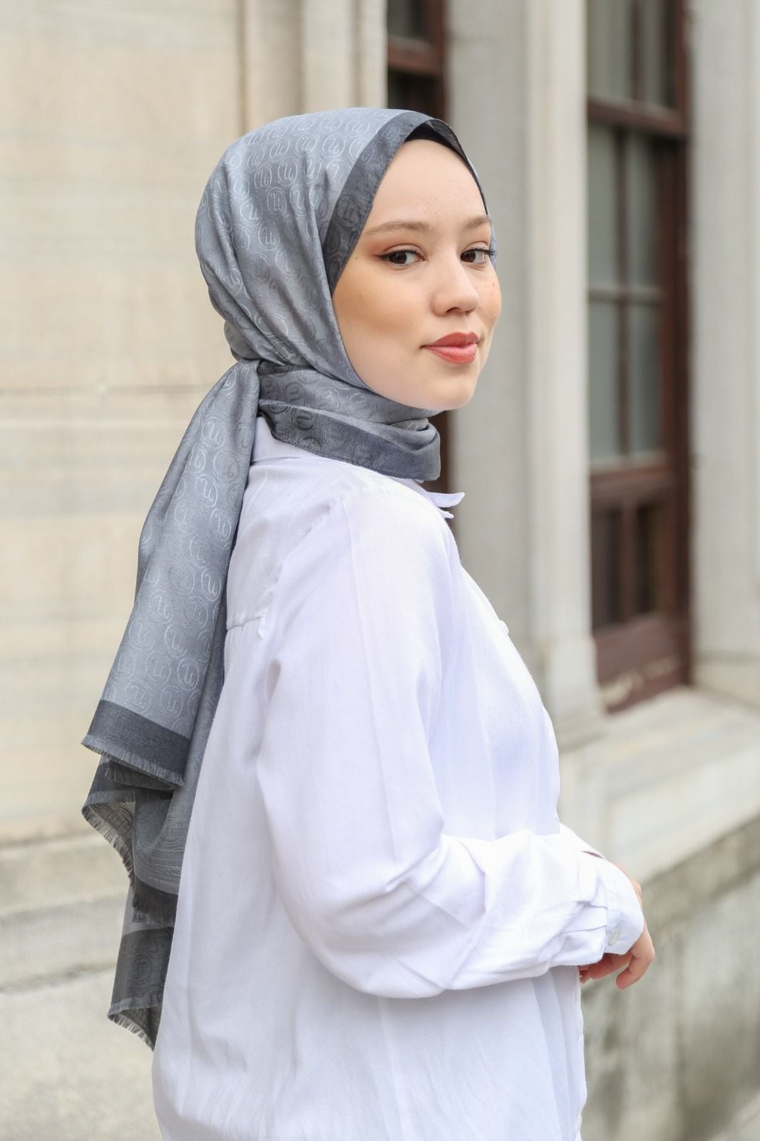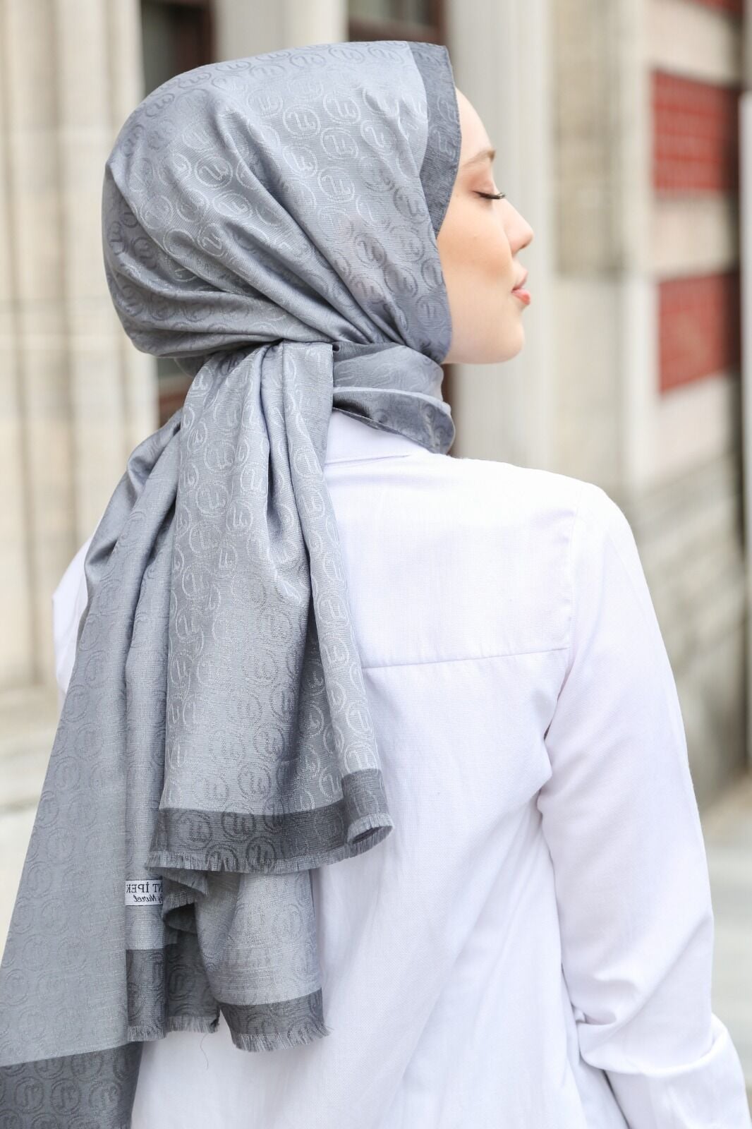 Hint İpek Monogram Şal - Gri