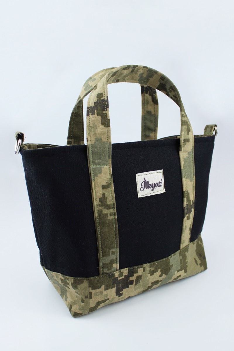 Desenli Kot Kumaş Kadın Küçük Boy Çapraz Omuz Çantası günlük kullanım için uygundur. Ayarlanabilir omuz askılıdır. Hem siyah hem kamuflaj desenli askısı mevcuttur.
