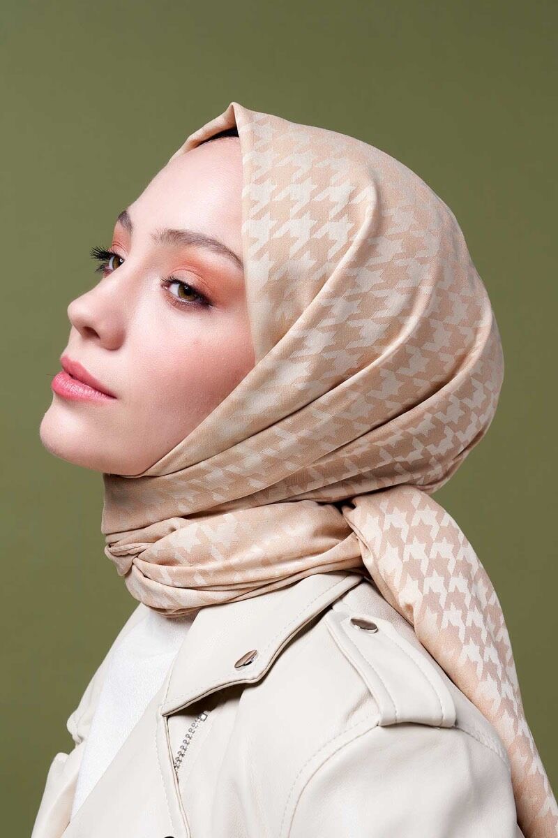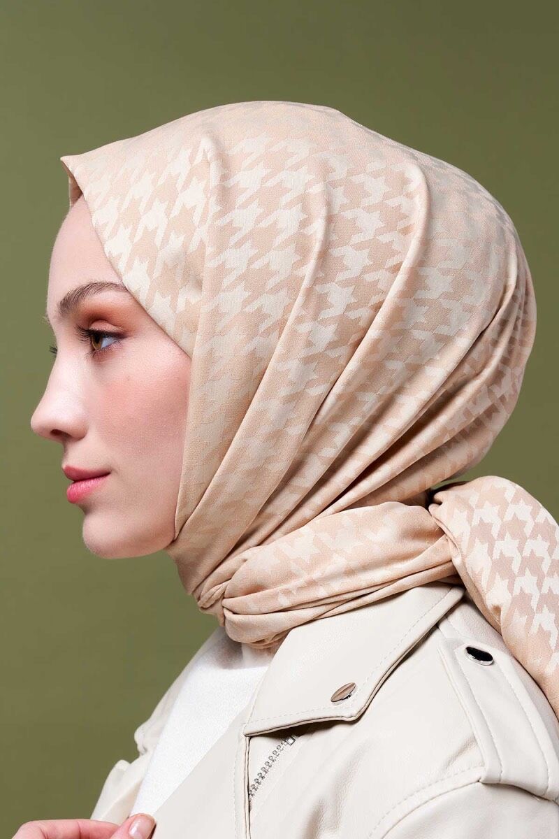 İpeksi desenli jakar şal pamuklu dokusu sayesinde yumuşak, ipeksi ve başta ağırlık yapmaz. Kendinden desenli jakar dokumadır.