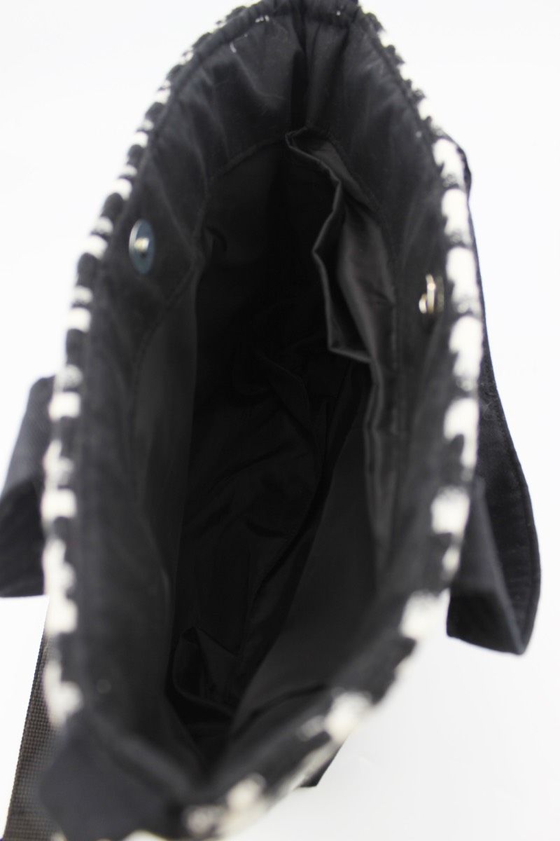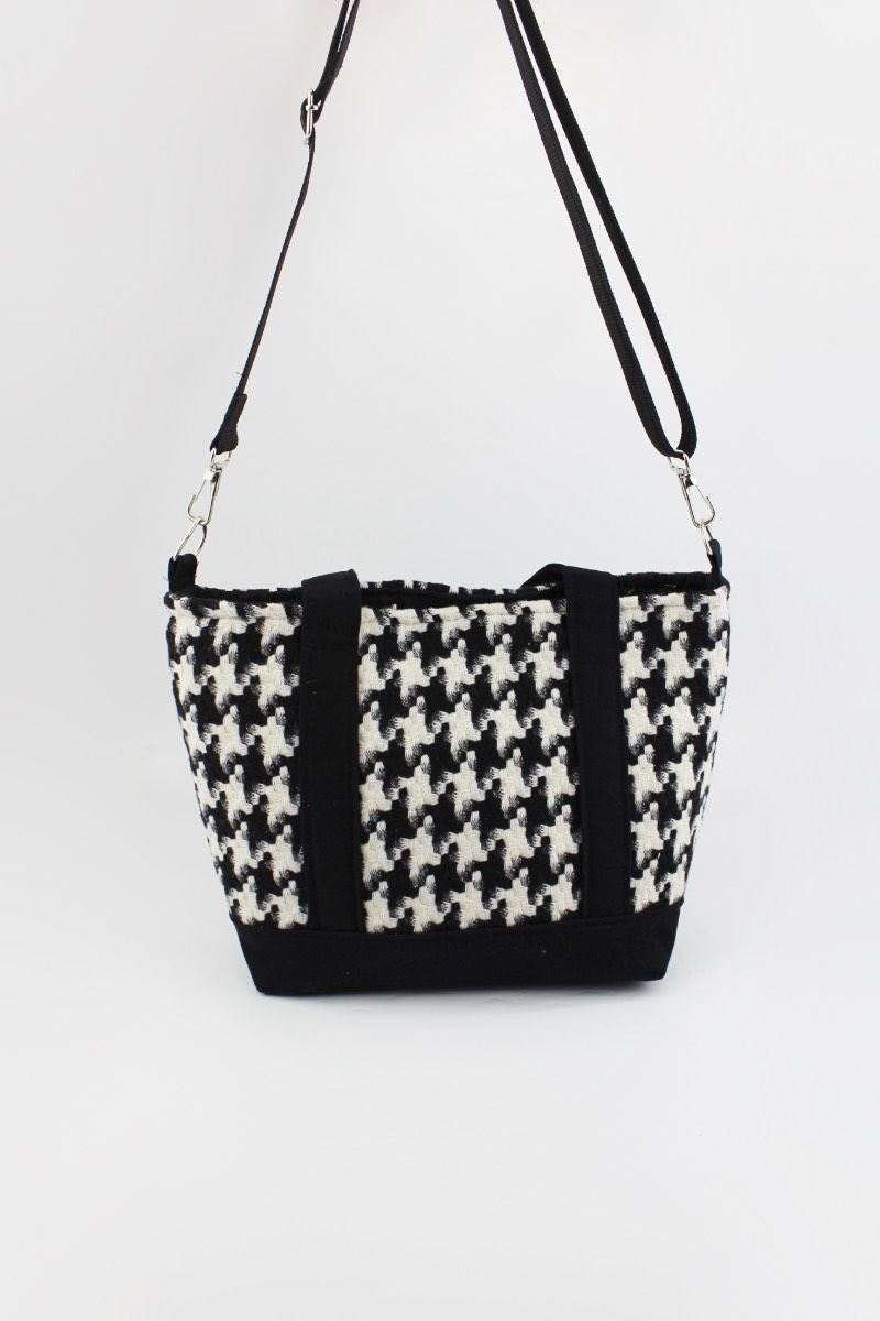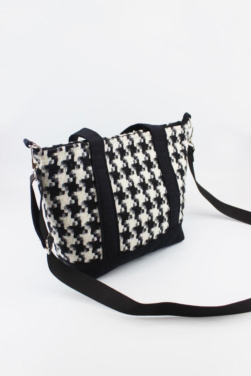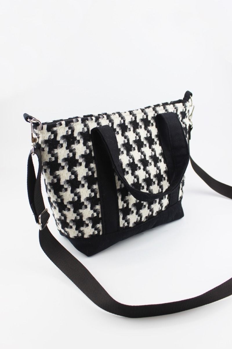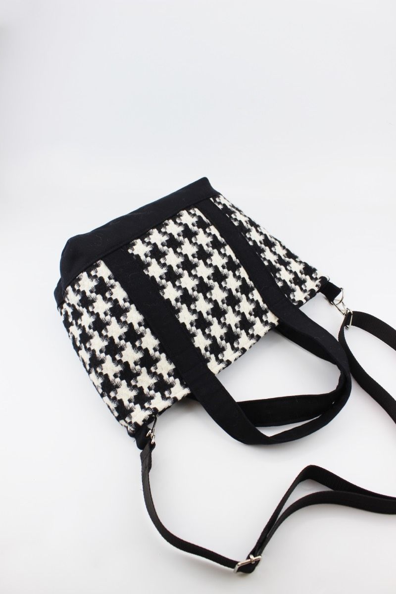 Kazayağı Desenli Kanvas Siyah Çıtçıt Kapamalı Kadın El, Kol ve Omuz Çantası 29x22x11 Cm