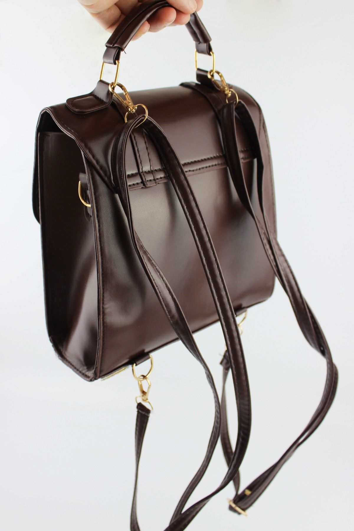 Kolej Tarzı Deri Kadın Küçük Boy El, Kol ve Sırt Çantası günlük kullanım için uygundur. Ayarlanabilir uzun askısı vardır.