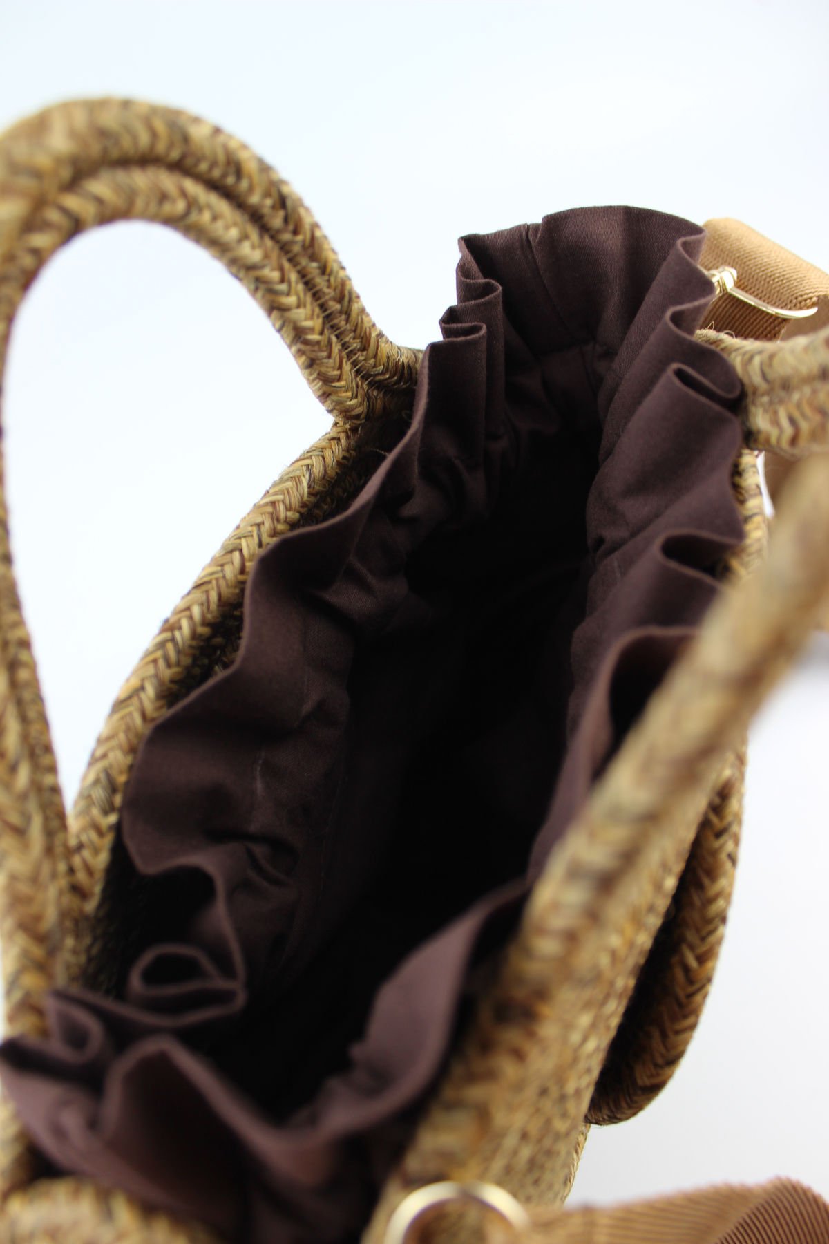 Mini Boy Ayarlanabilir Askılı Kahverengi Keseli Sonsuzluk Model Hasır Kadın El ve Omuz Çantası 24x17x7 Cm