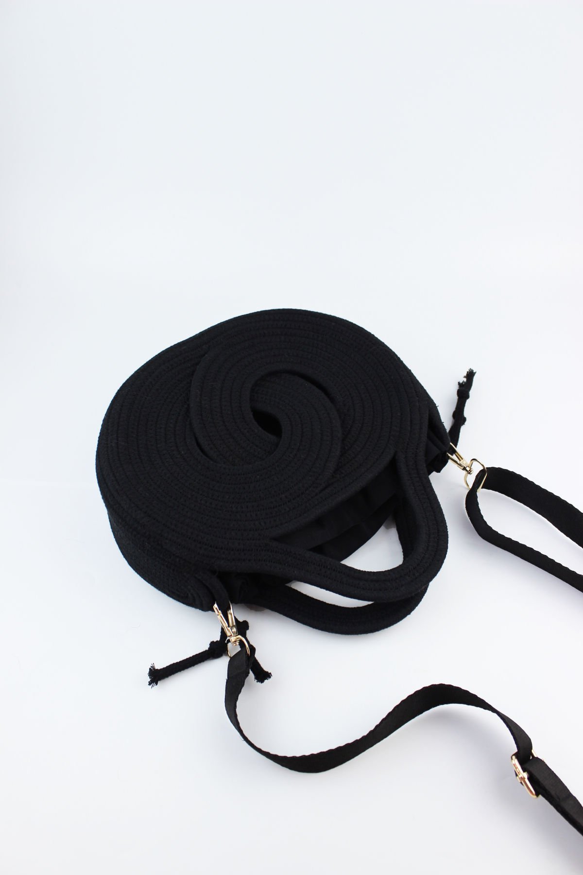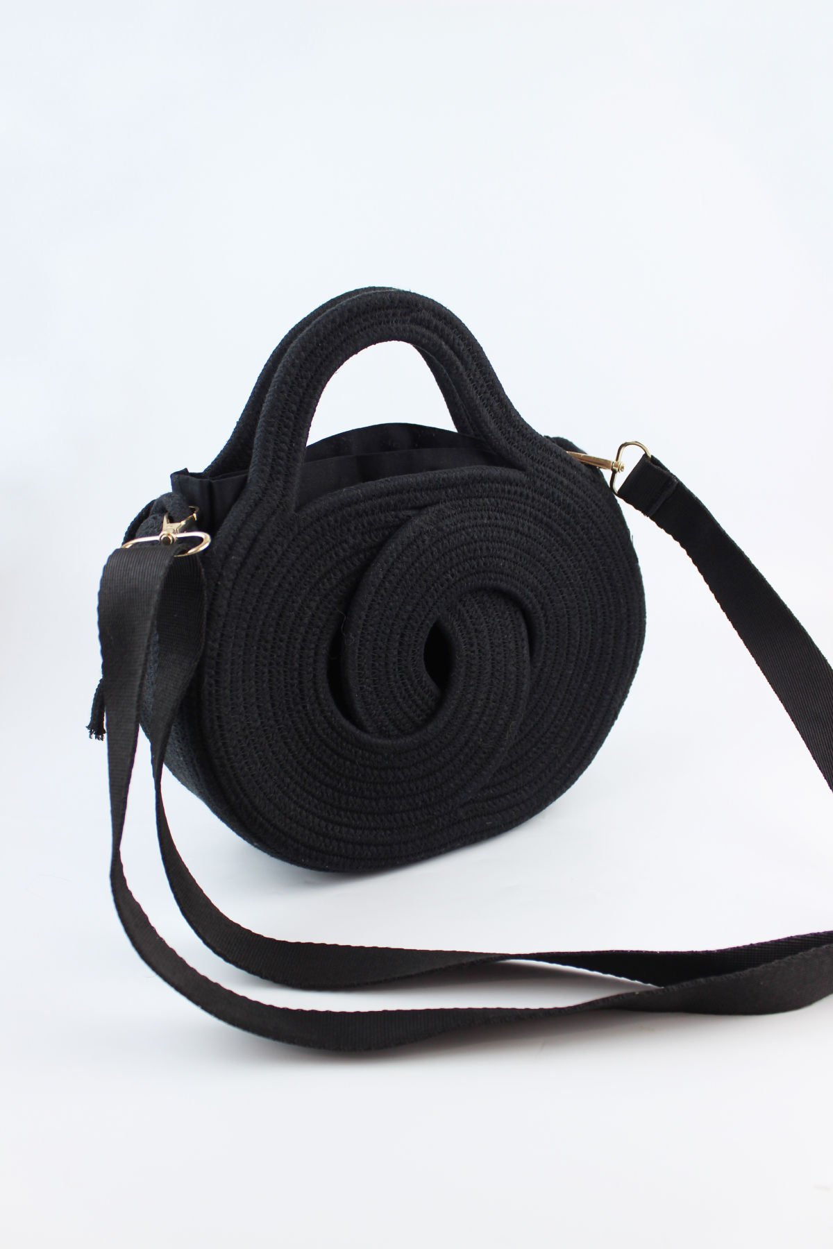 Mini Boy Ayarlanabilir Askılı Siyah Keseli Sonsuzluk Model Hasır Kadın El ve Omuz Çantası 24x17x7 Cm