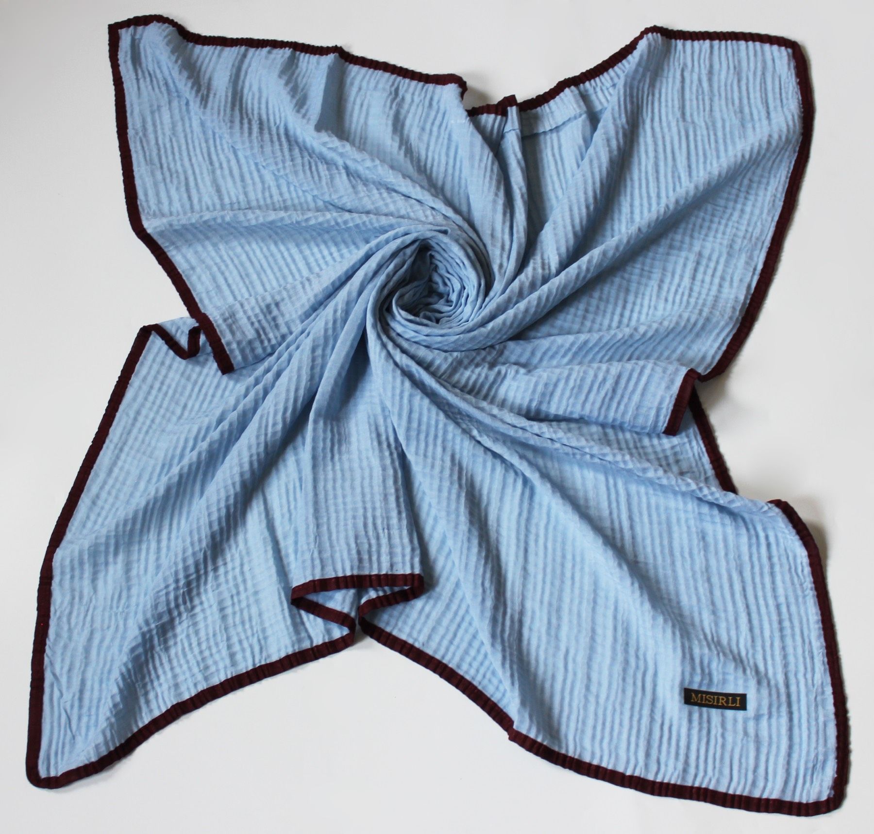 Mısırlı Müslin Biyeli Eşarp, müslin kumaşından üretilen, nefes alan yapısı, hafif dokusu ile gün boyu rahatlık sağlar.