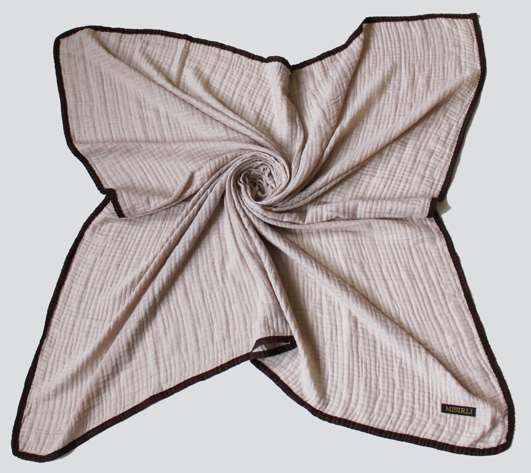 Mısırlı Müslin Biyeli Eşarp, müslin kumaşından üretilen, nefes alan yapısı, hafif dokusu ile gün boyu rahatlık sağlar.