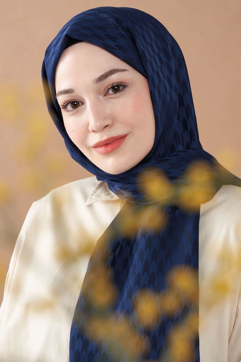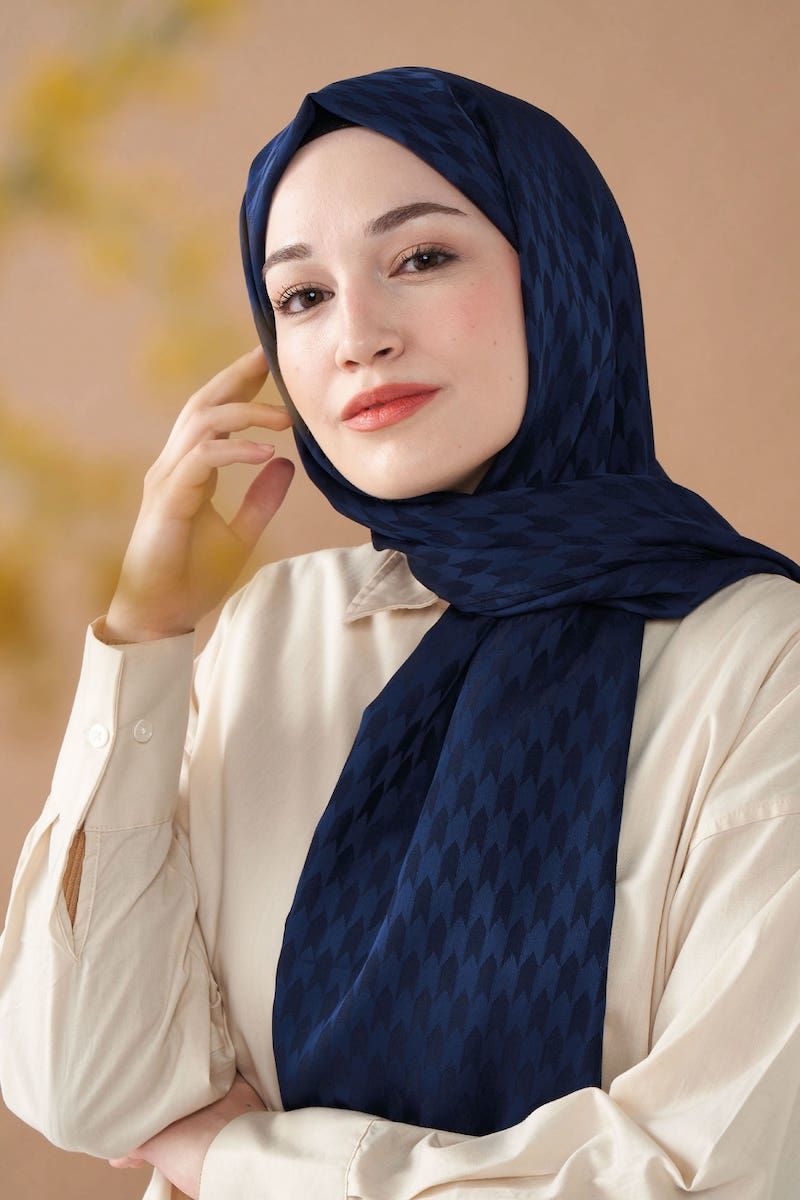 Pie Desenli İpeksi Şal - Lacivert