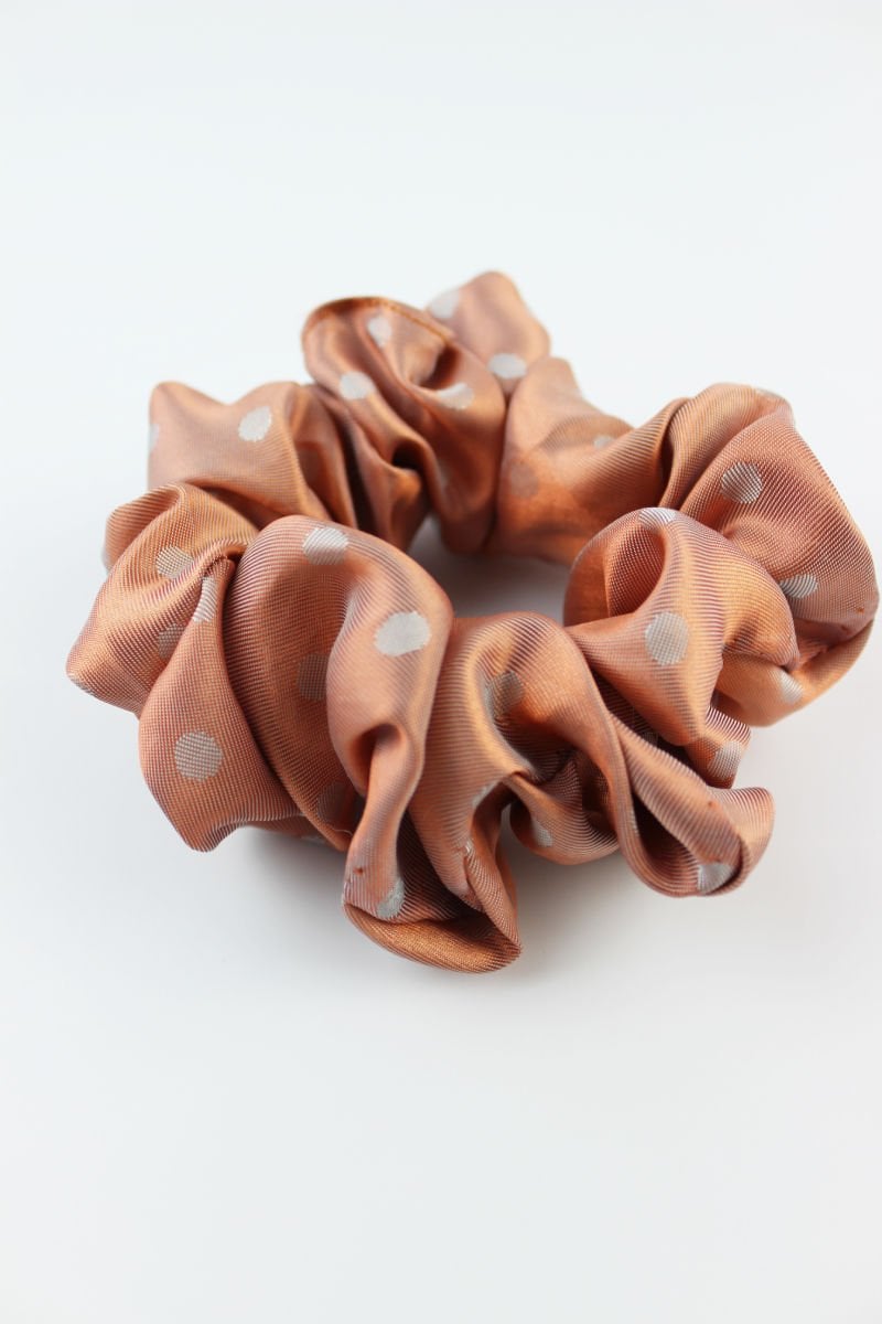 Puantiye Desenli Saten Kumaş Lastik Toka Simit Toka - Somon