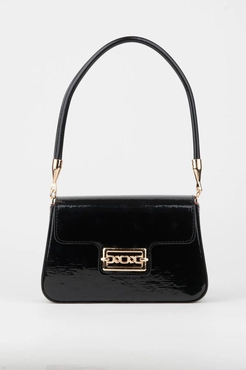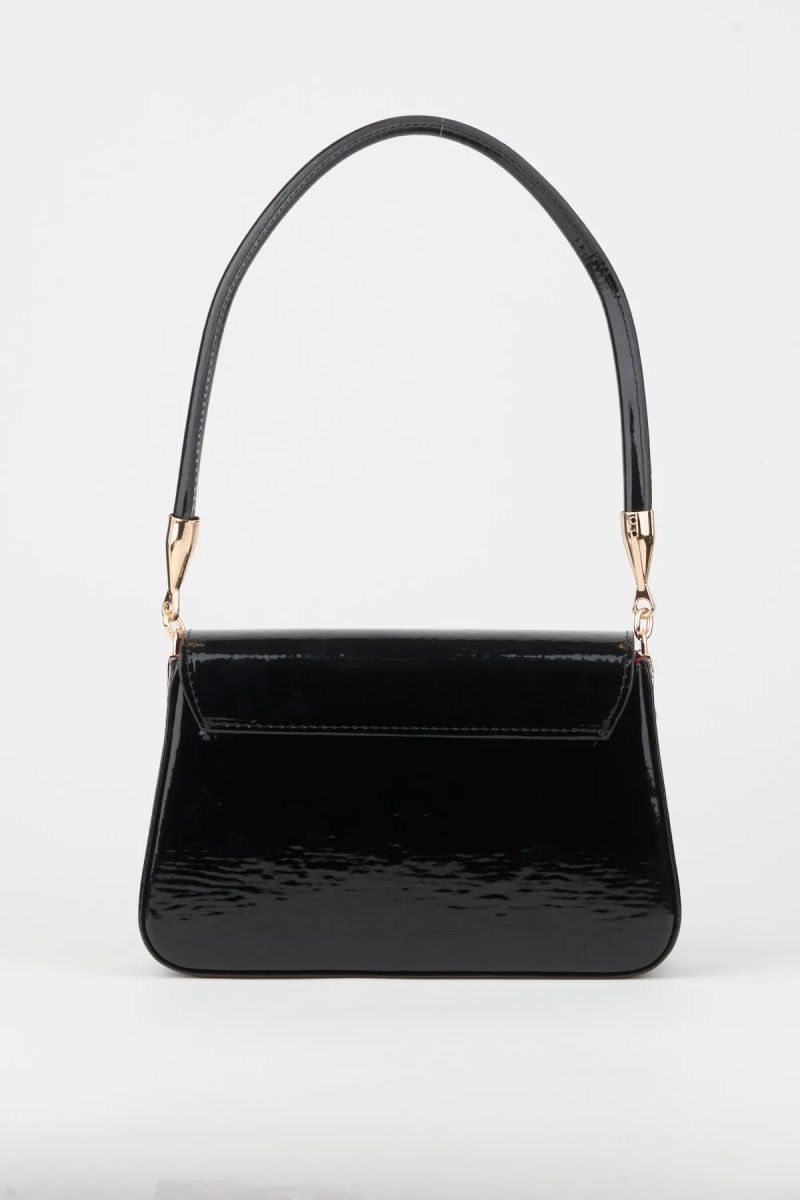 Şık ve Sade Yuvarlak Kol Askılı Kadın Rugan Siyah El, Kol Çantası 24x15x8 Cm