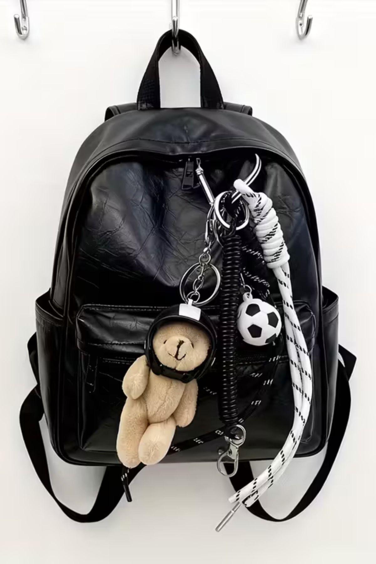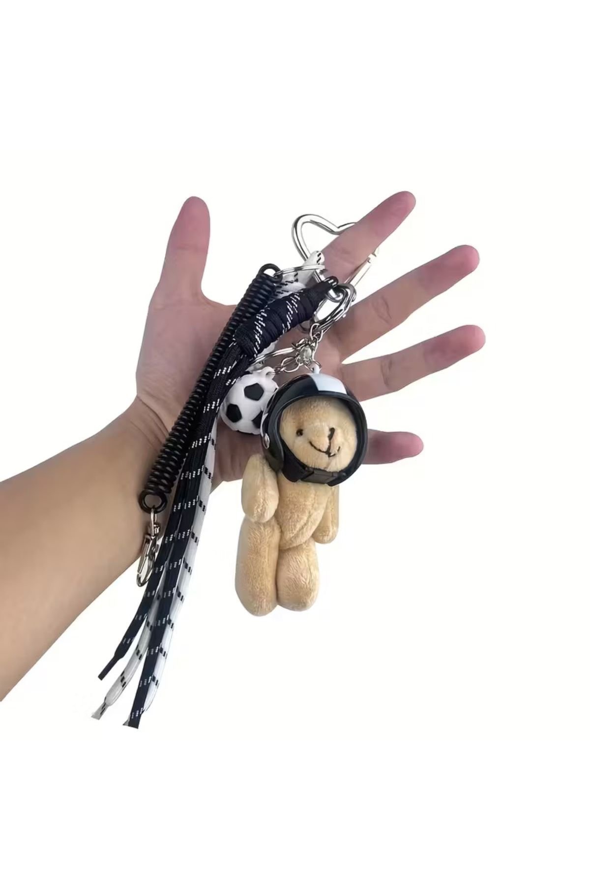 Siyah Beyaz Kasklı Ayıcık Charm Çanta Aksesuarları (Çanta Dahil Değildir)