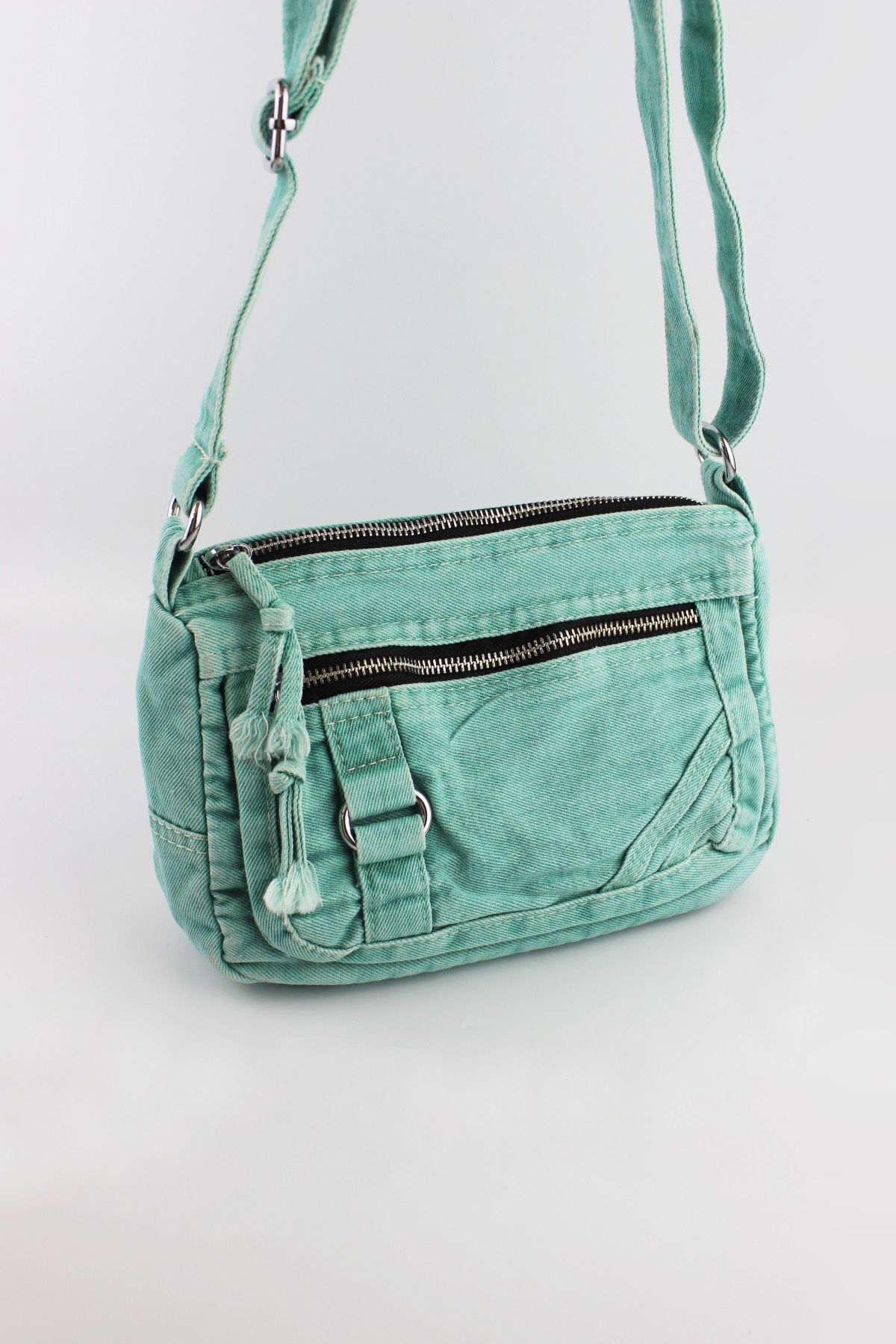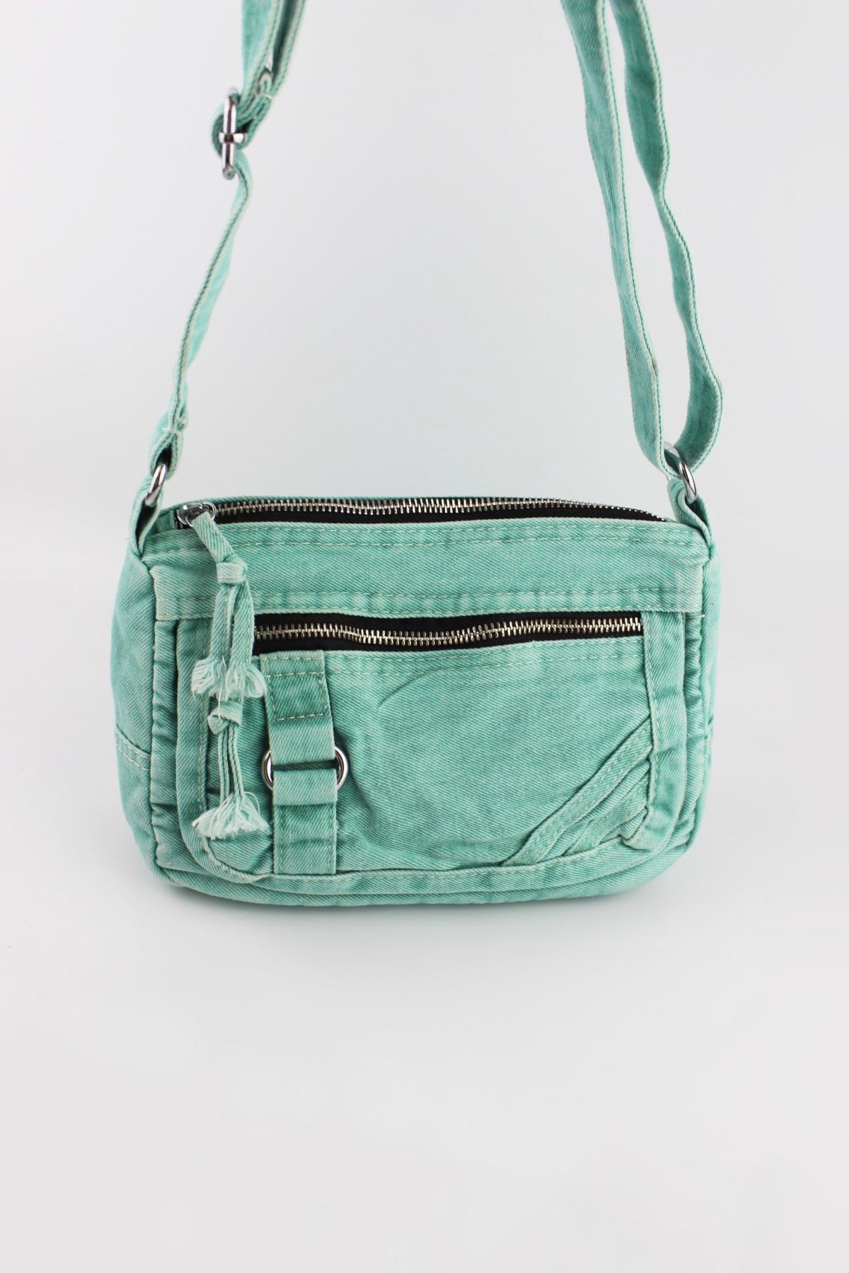 Düz Renk Kot Kumaş Kadın Küçük Boy Çapraz Omuz Çantası günlük kullanım için uygundur. Ayarlanabilir omuz askılıdır.